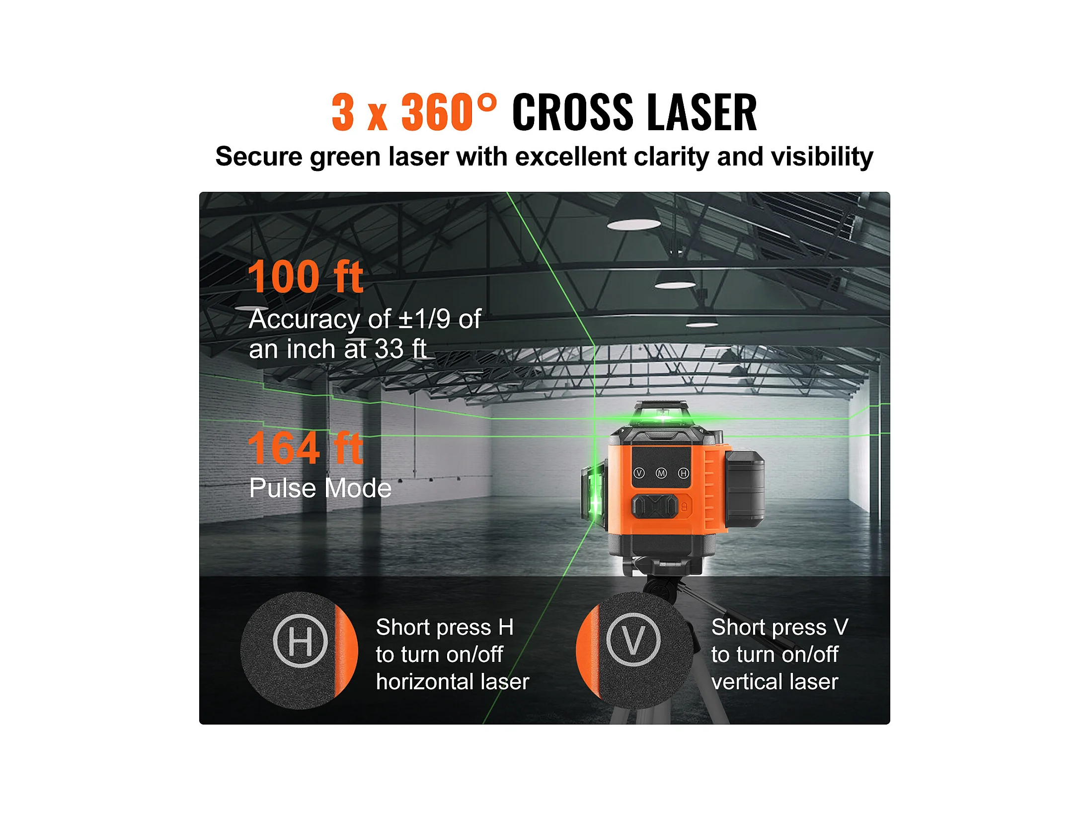 Niveau Laser, SucceBuy Niveau Laser 3048 CM Ligne Croisée Verte Autonivelante Haute Précision