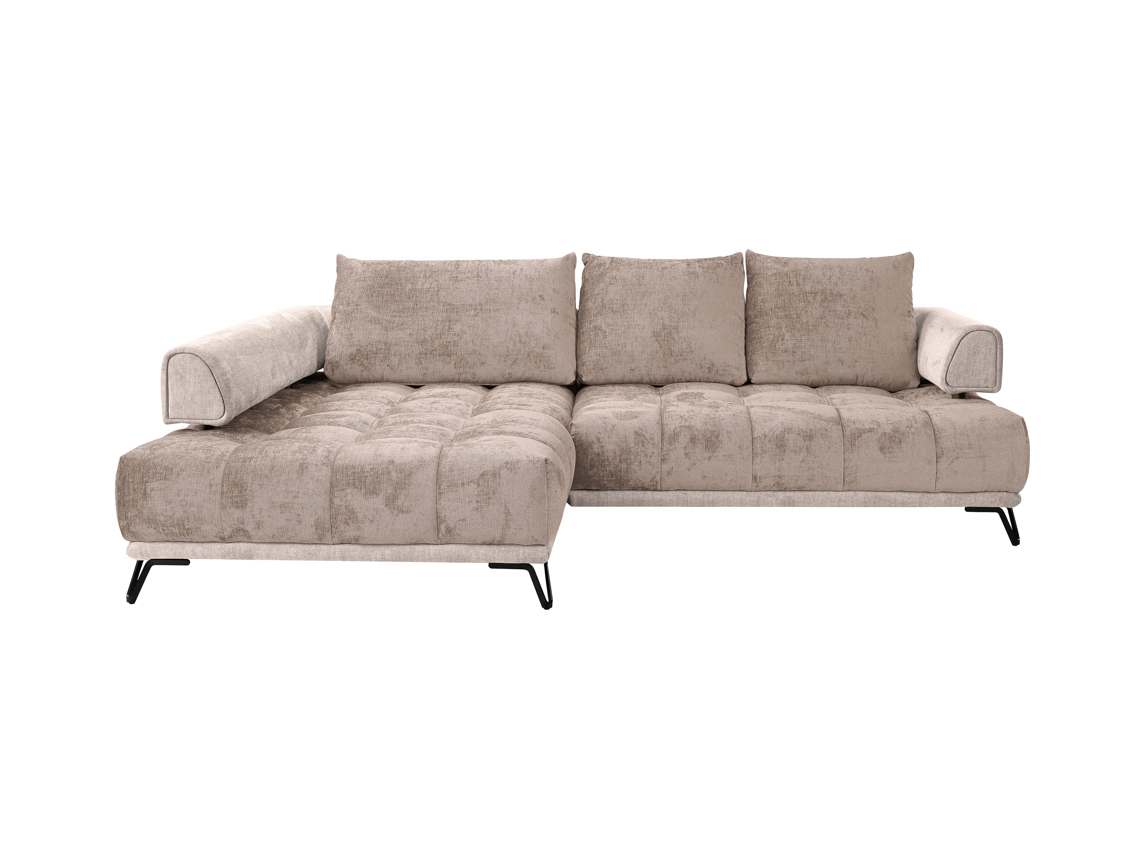 Canapé d'angle gauche en tissu chenille et velours taupe NIVORIA