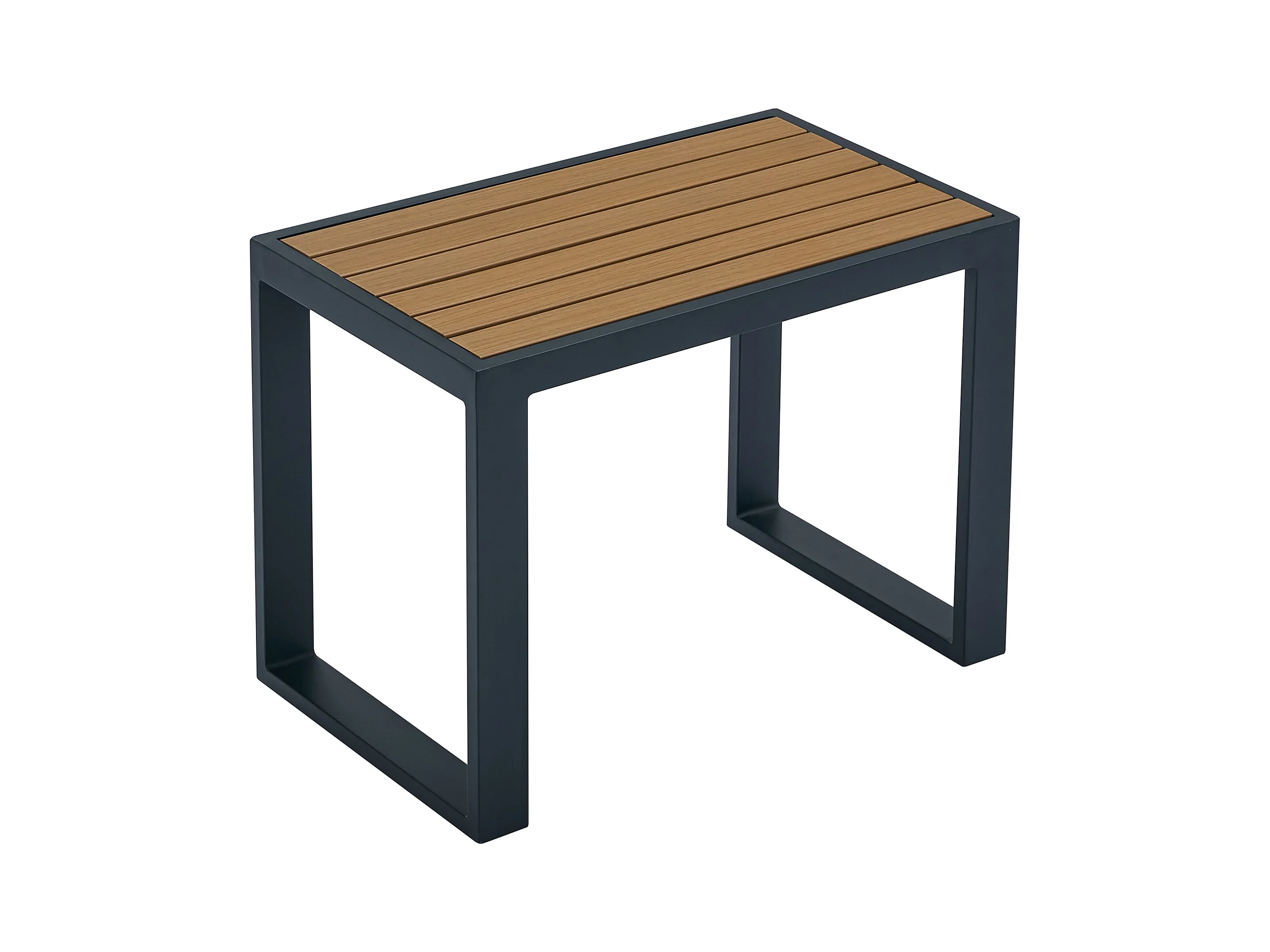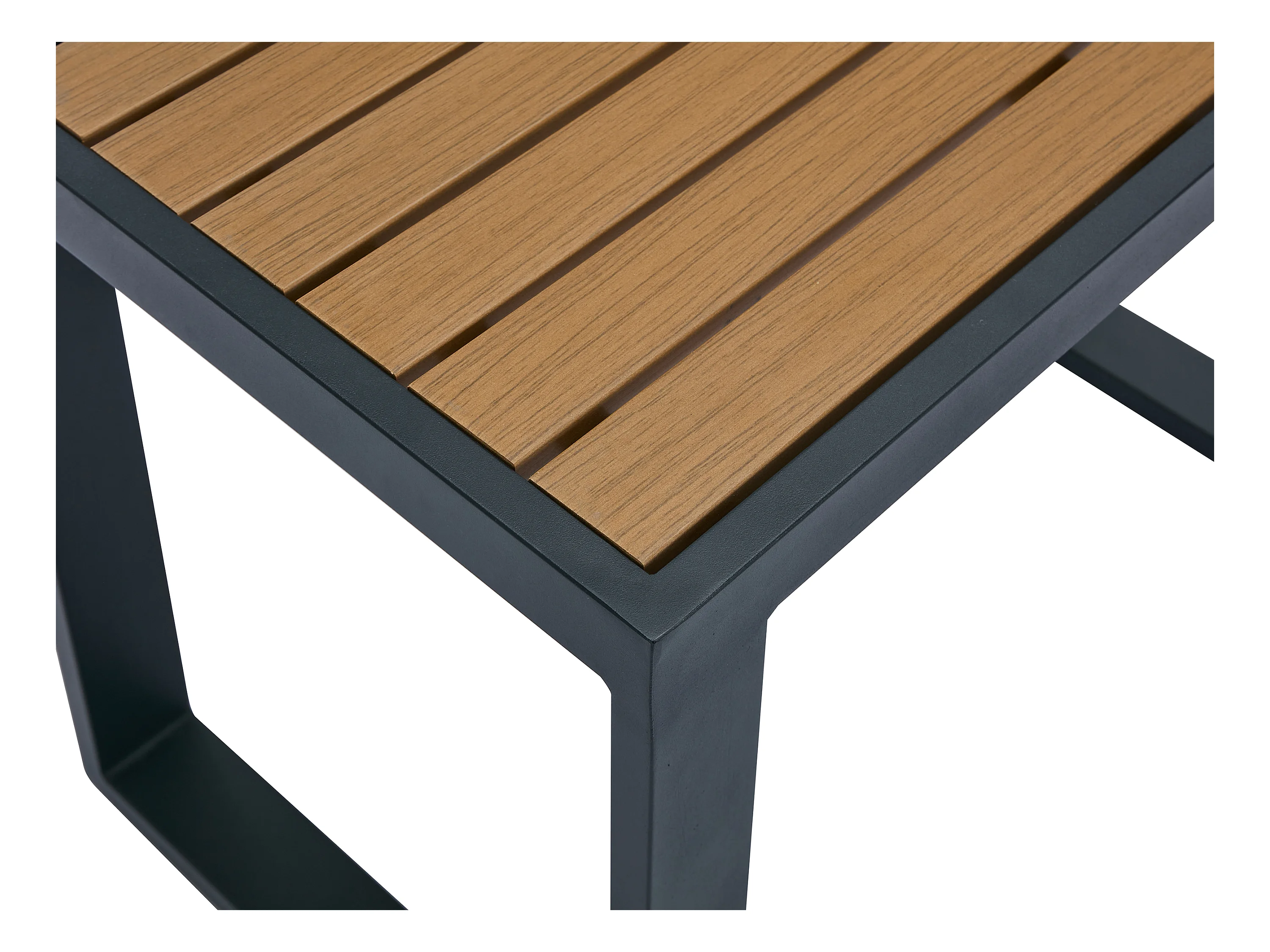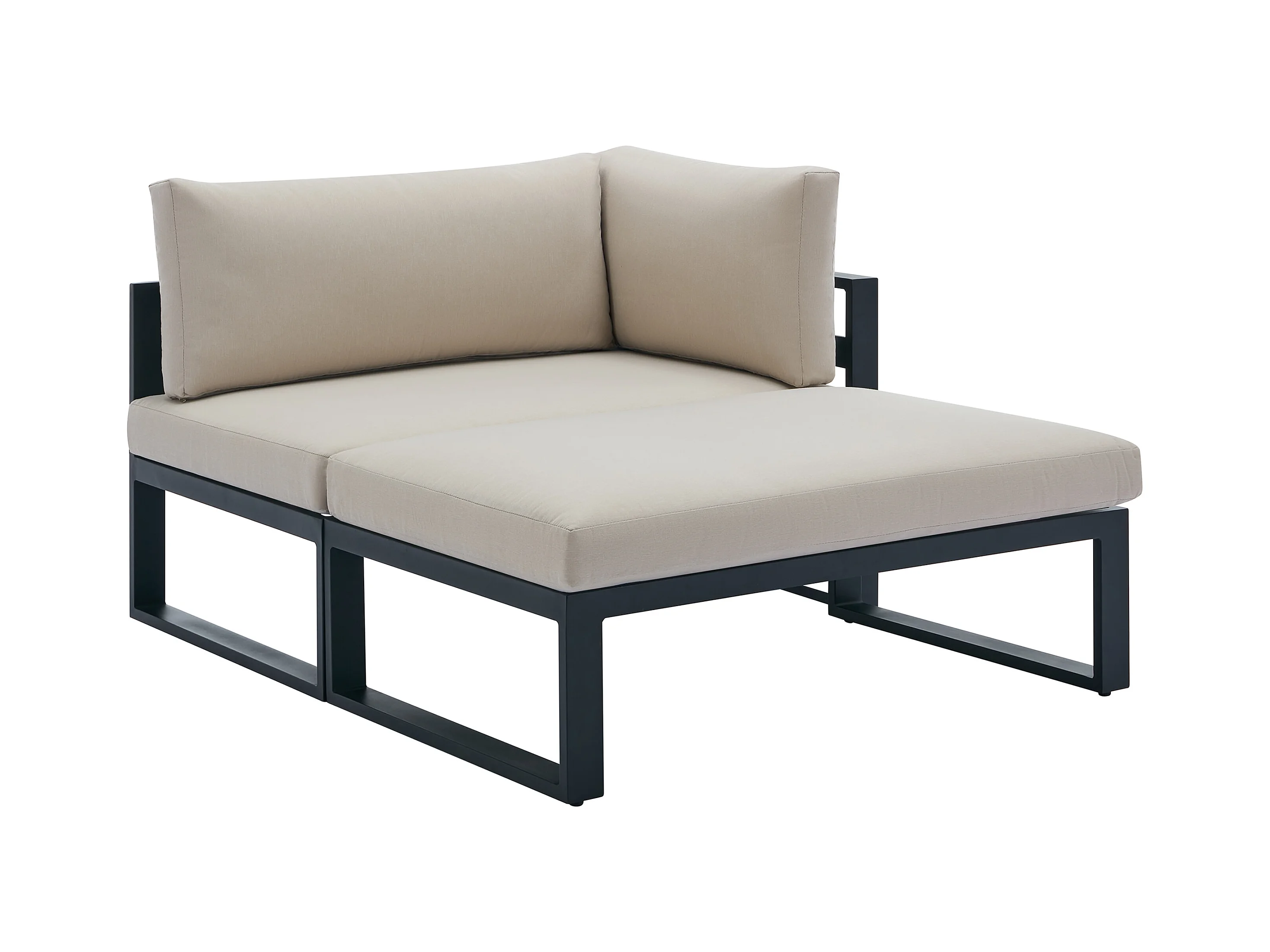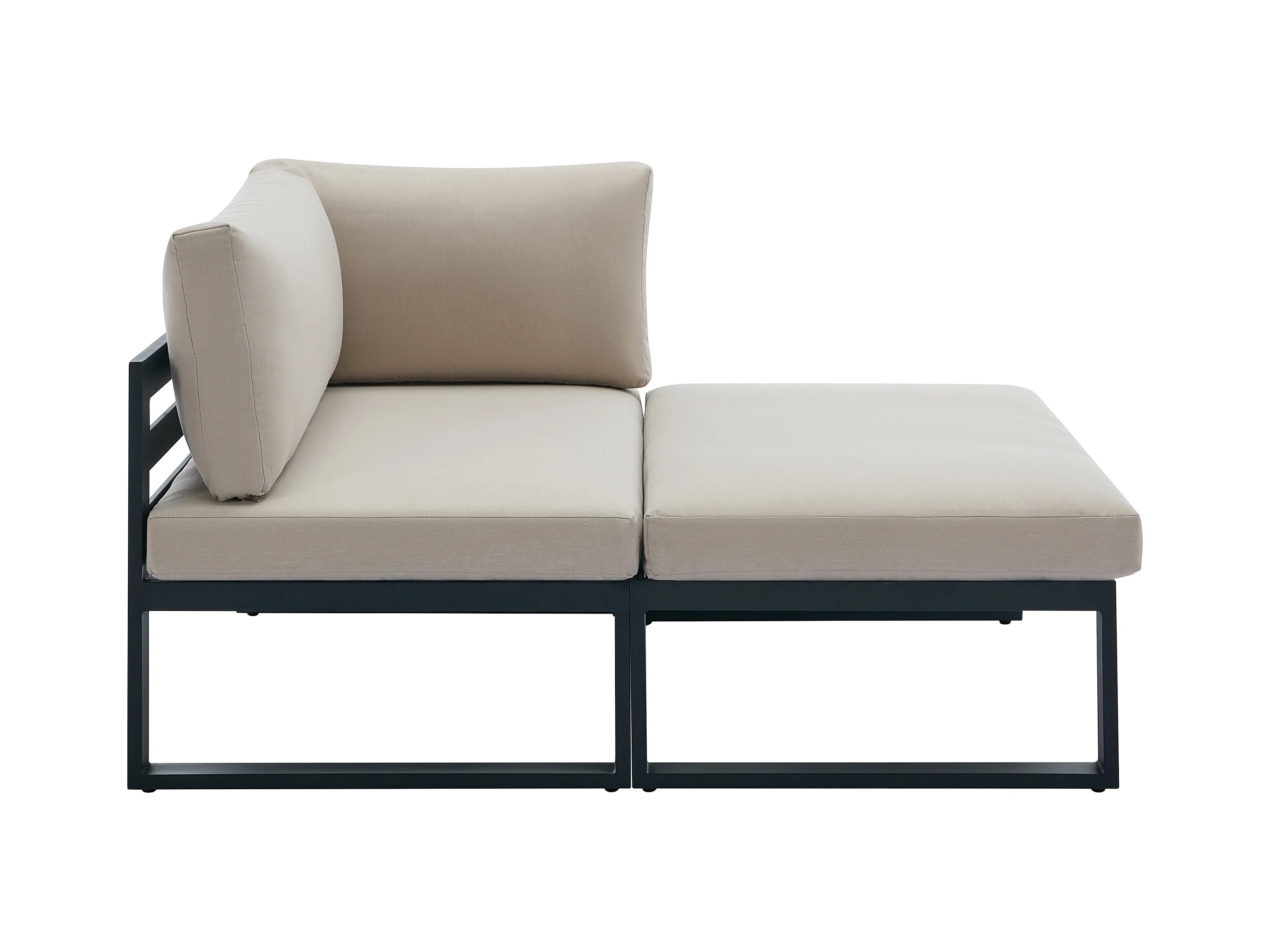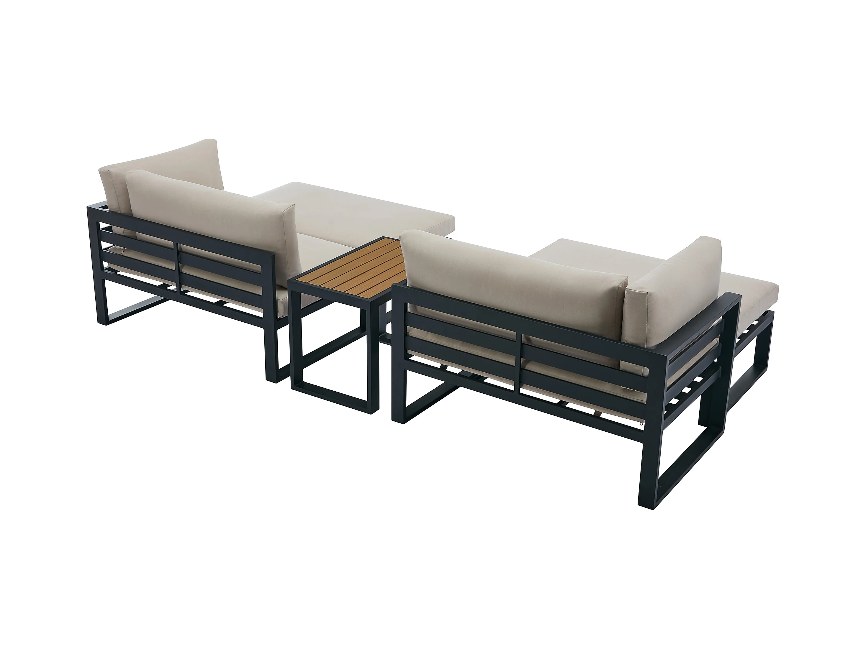 Salon de jardin modulable en aluminium : 2 fauteuils d'angle, 2 poufs et une table basse - Noir avec coussins beige - NOLLAY de MYLIA