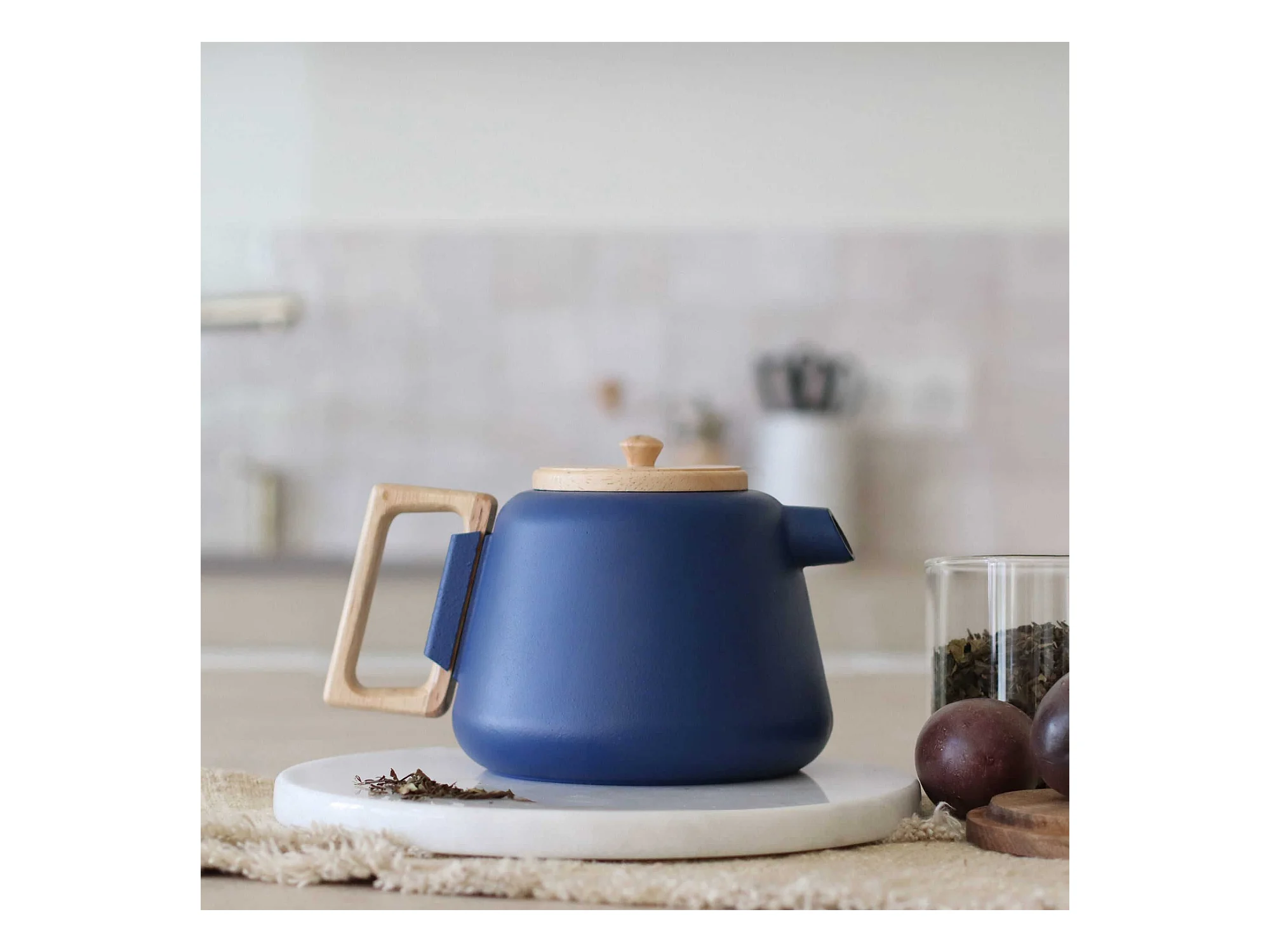 Ogo Living - Theiere Viggo 1000ml En Fonte Bleu Avec Poignee Couvercle Bois