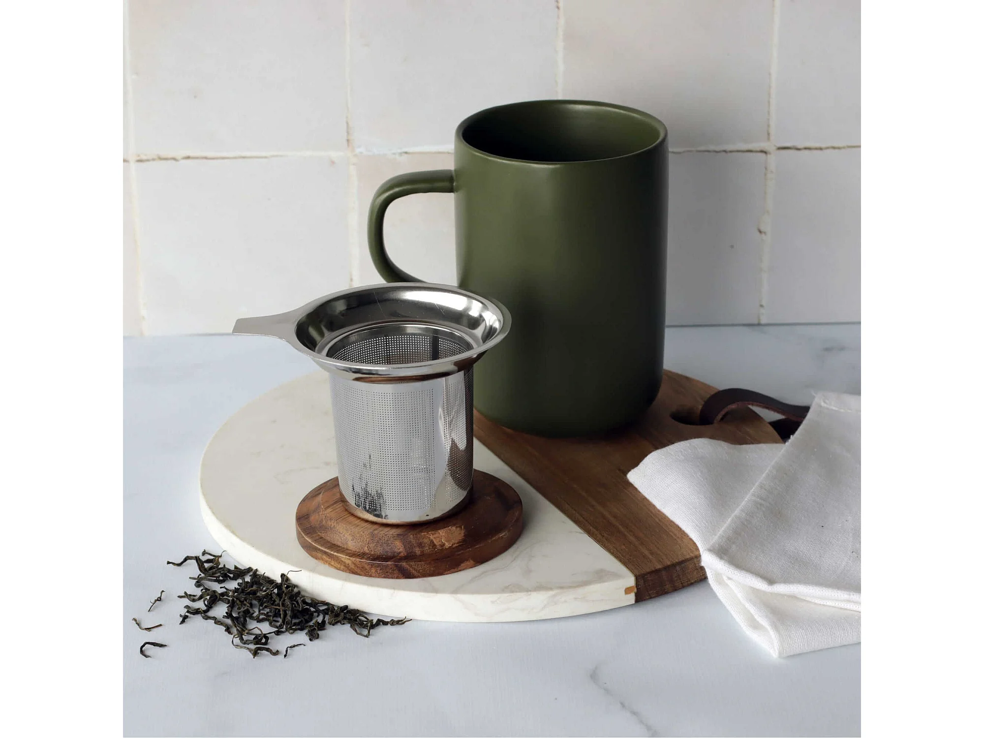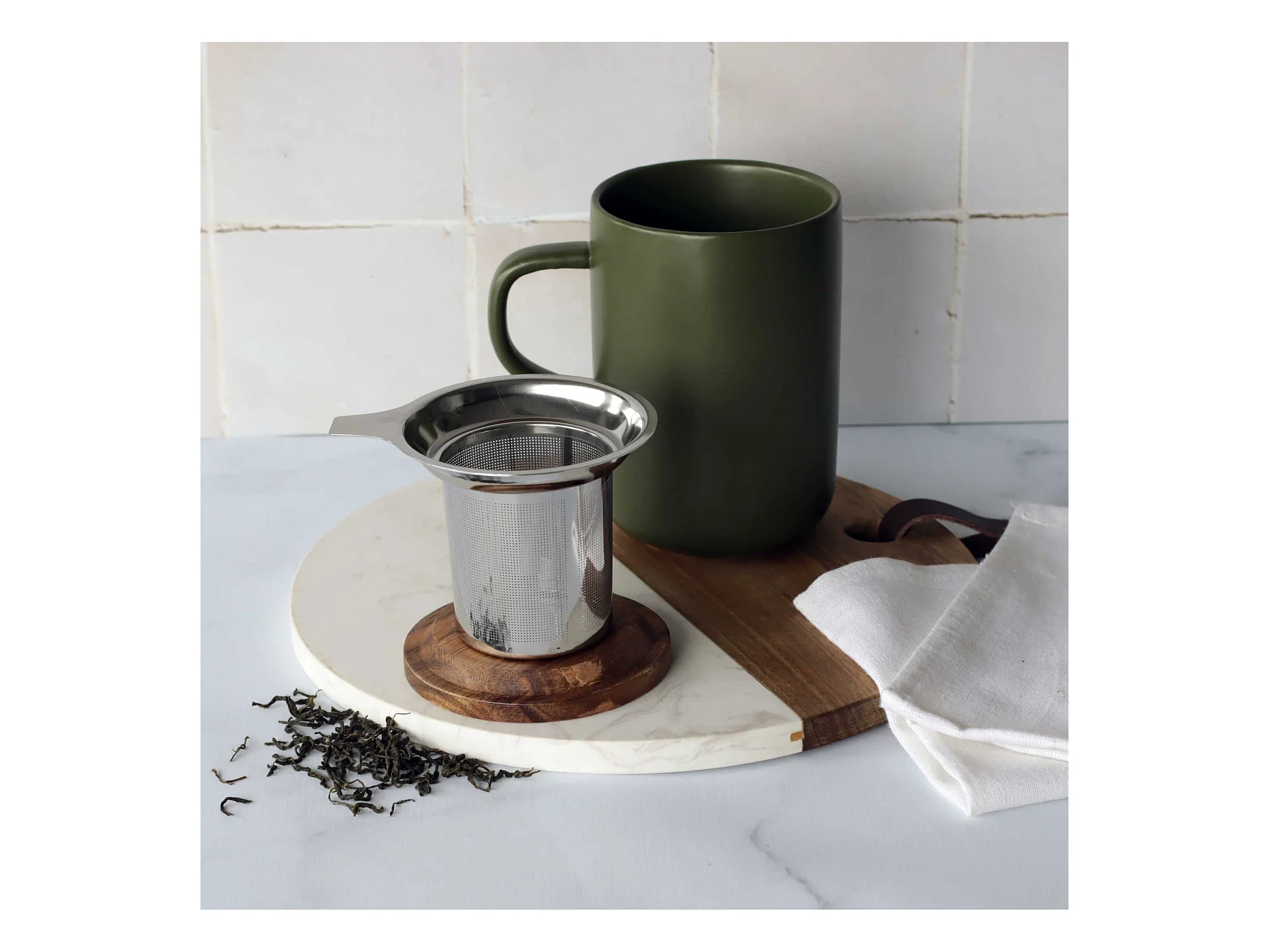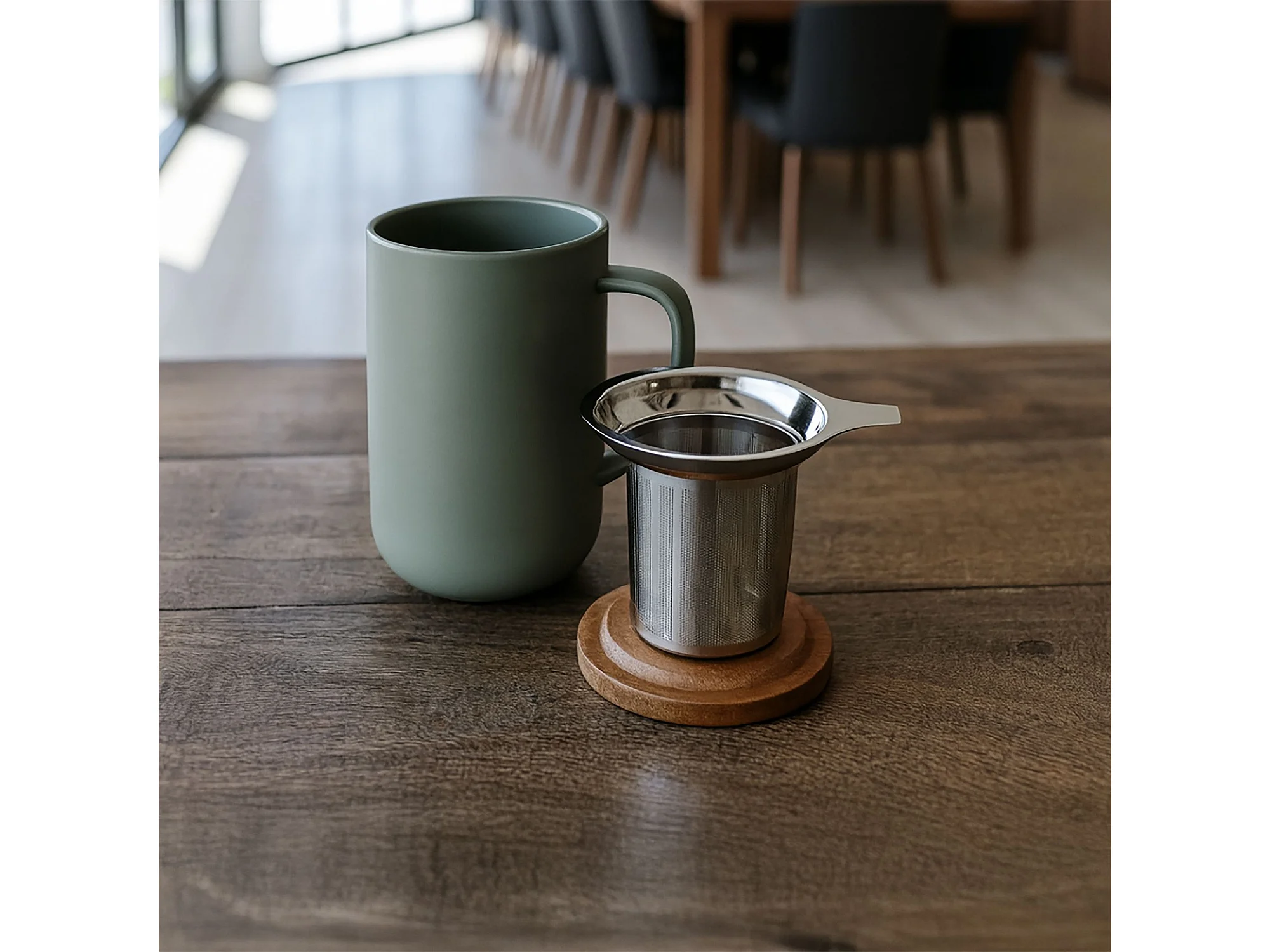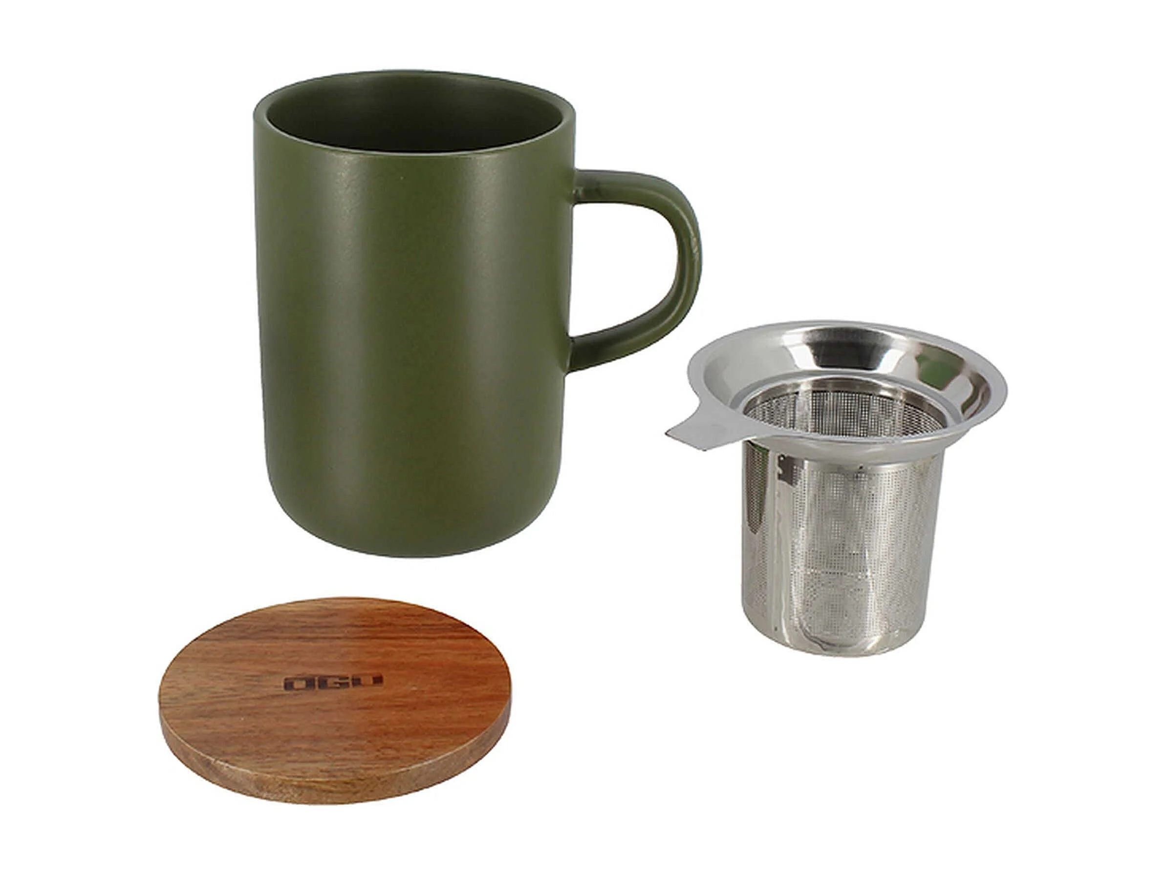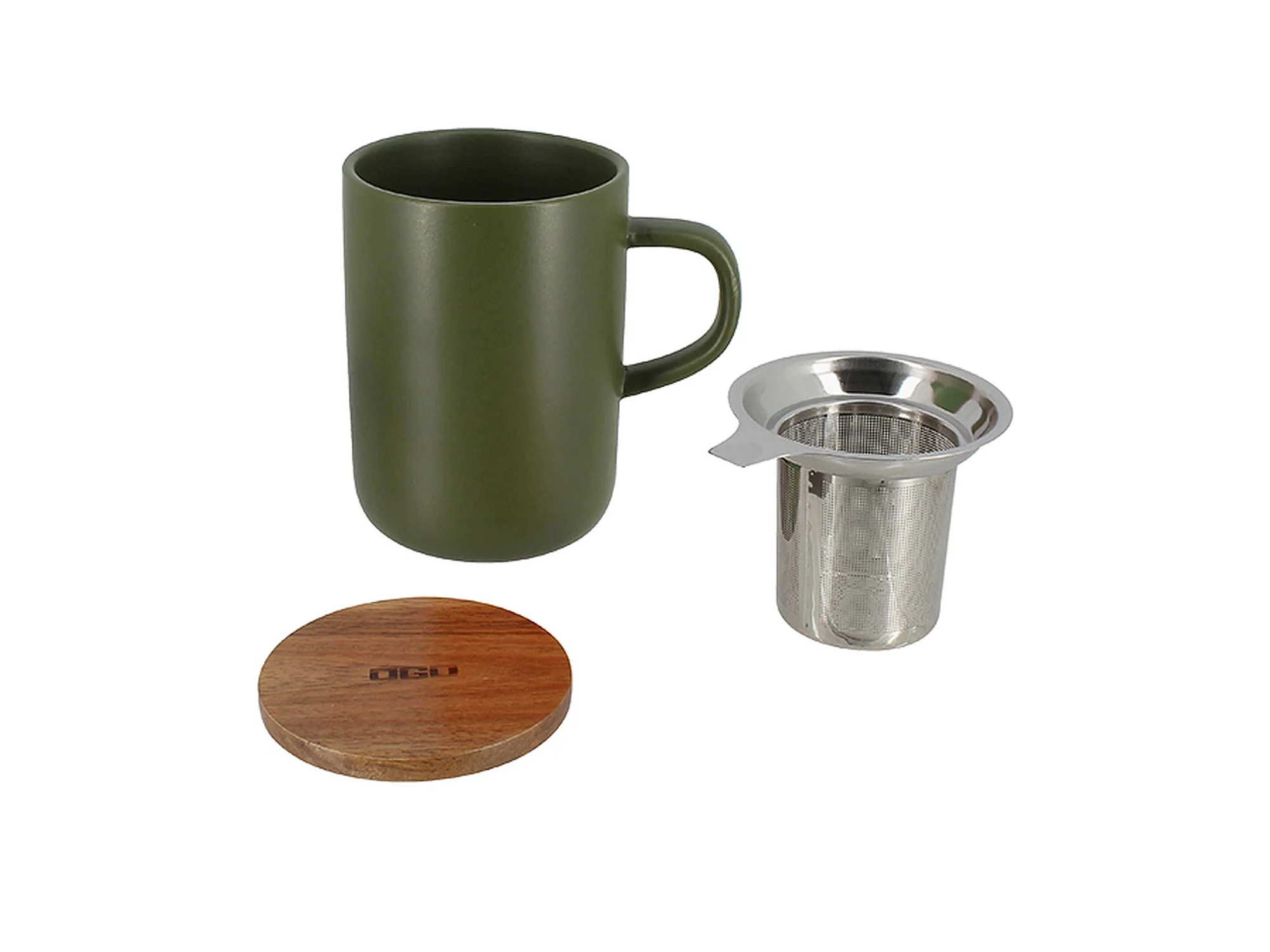 Ogo Living - Tisaniere Juliet Kaki En Gres Et Couvercle En Acacia De 475 Ml