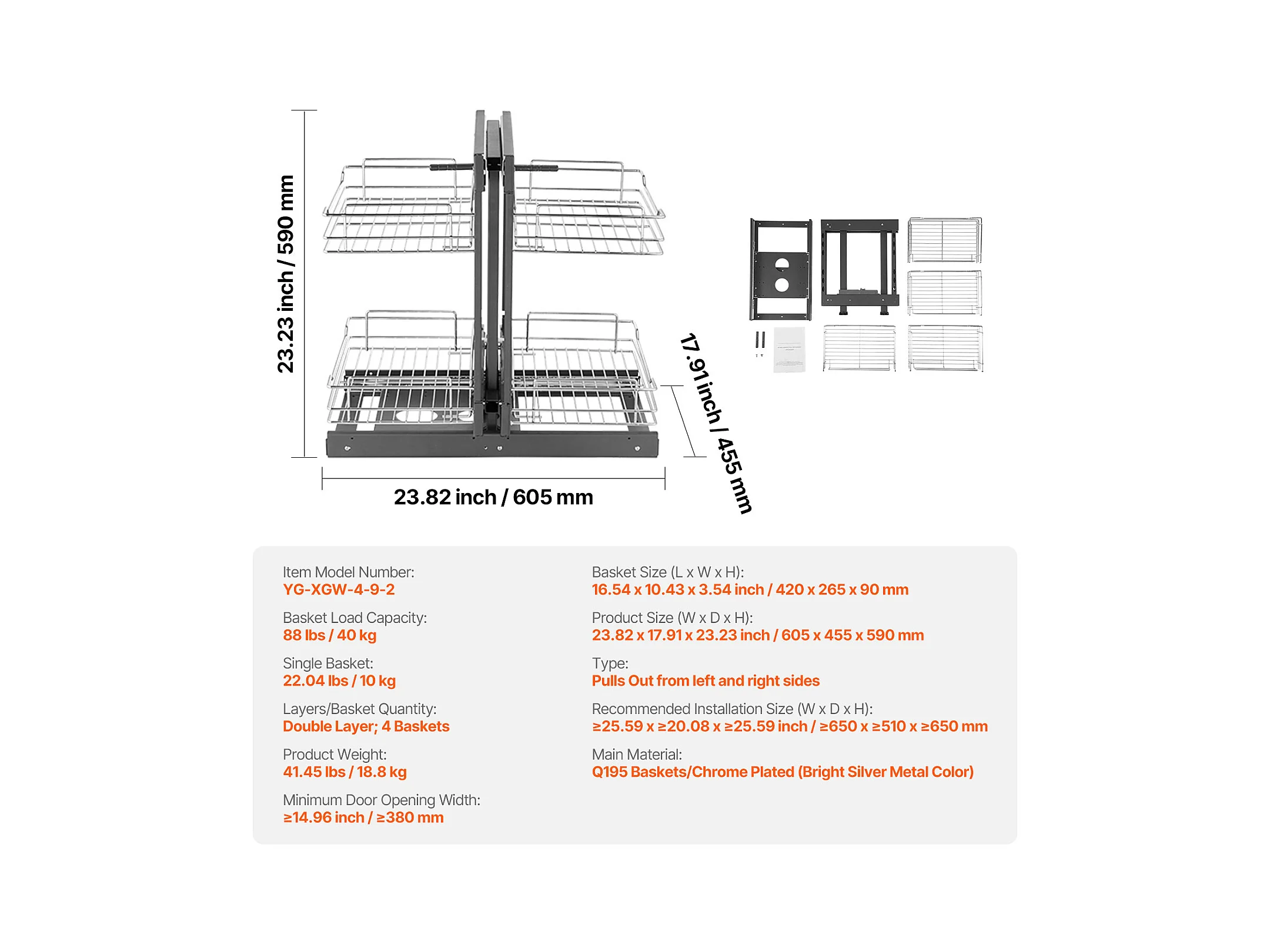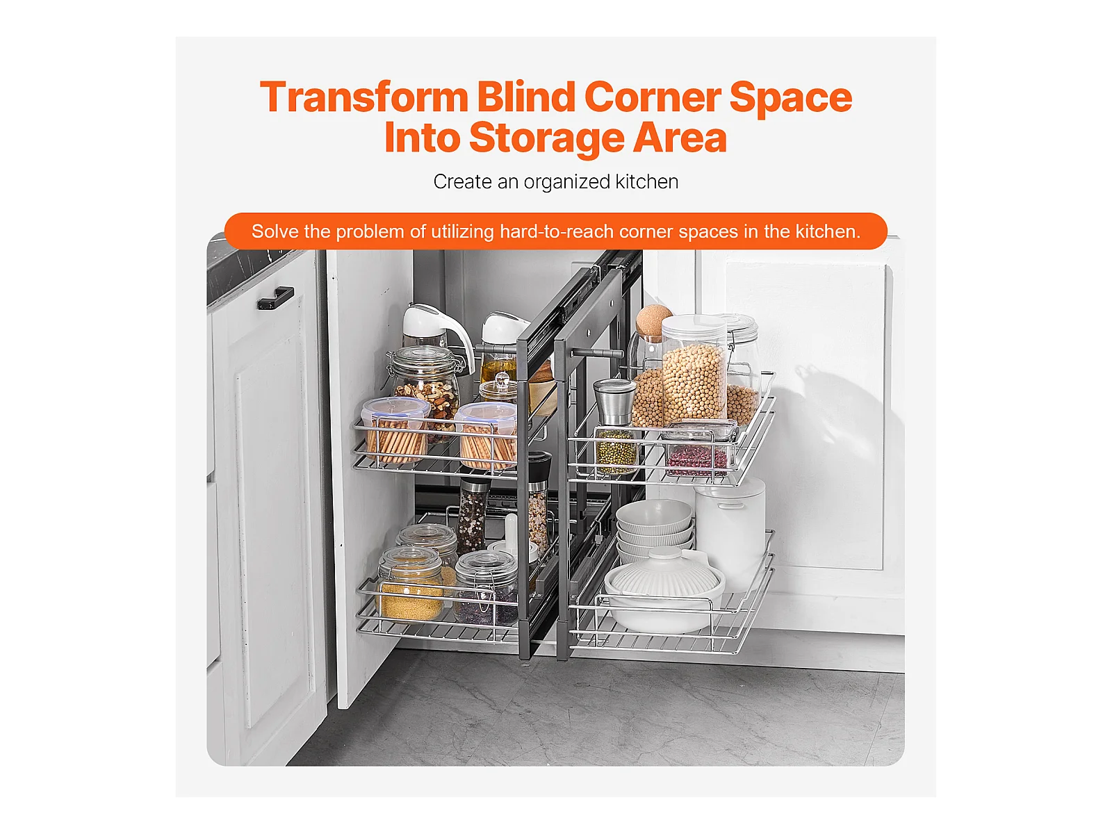 Organisateur d'Armoires de Cuisine SucceBuy, Organisateur d'Angle Mort Coulissant, en Acier Galvanisé