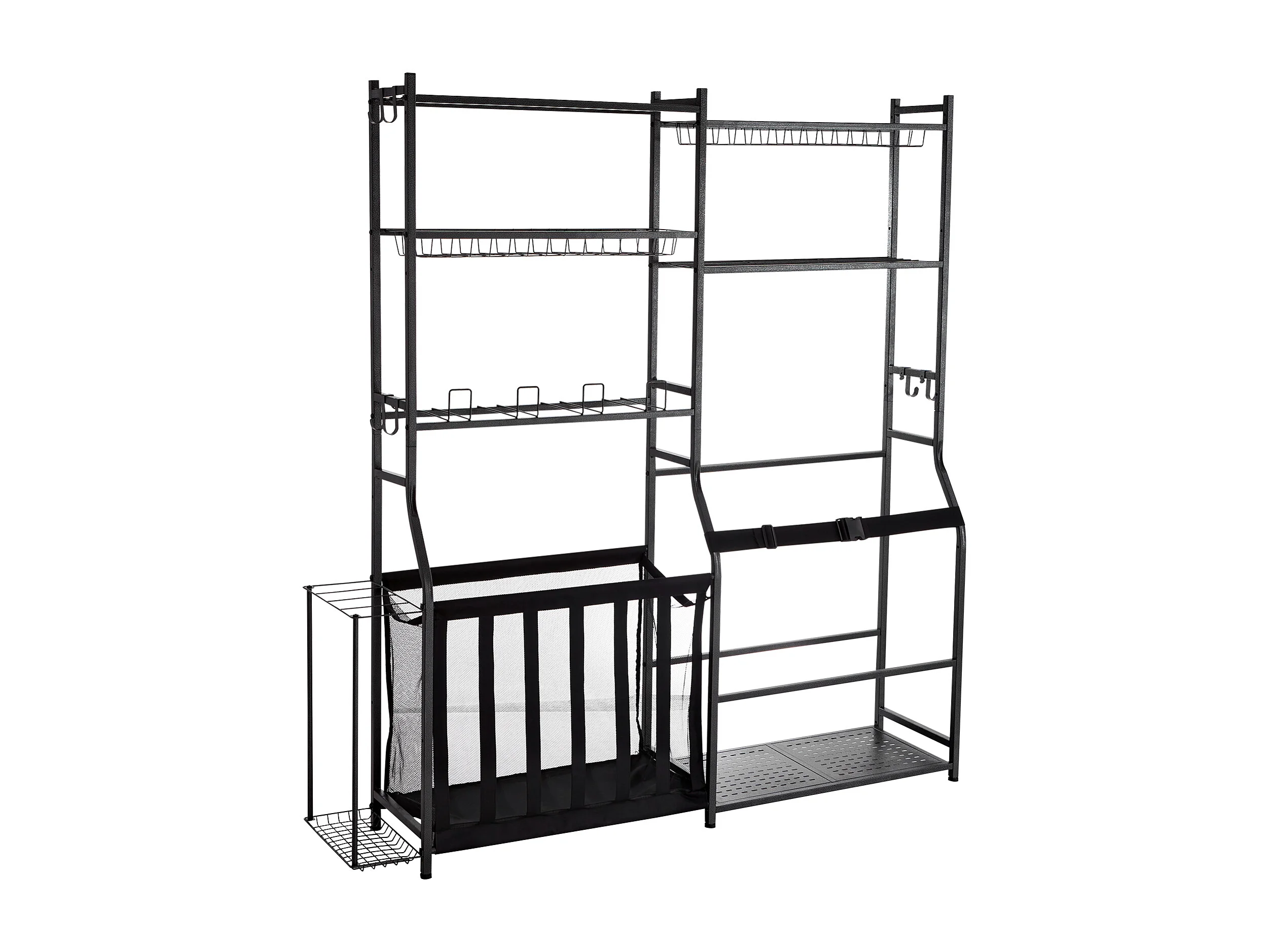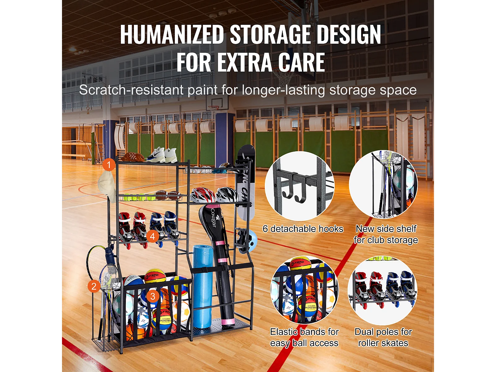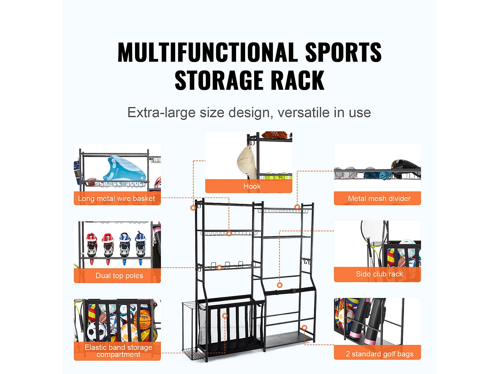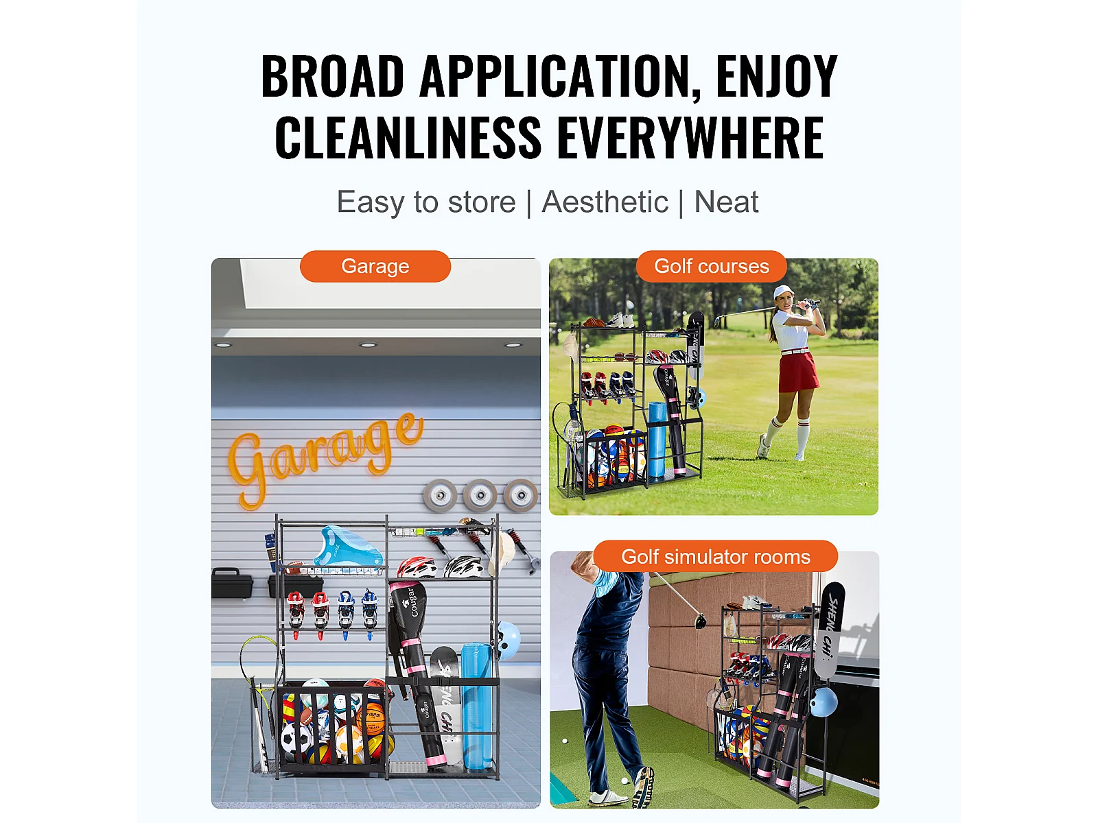 Organisateur de Rangement de Golf SucceBuy, Support pour 2 Sacs, Chariot pour Clubs et Balles pour Garage, Noir