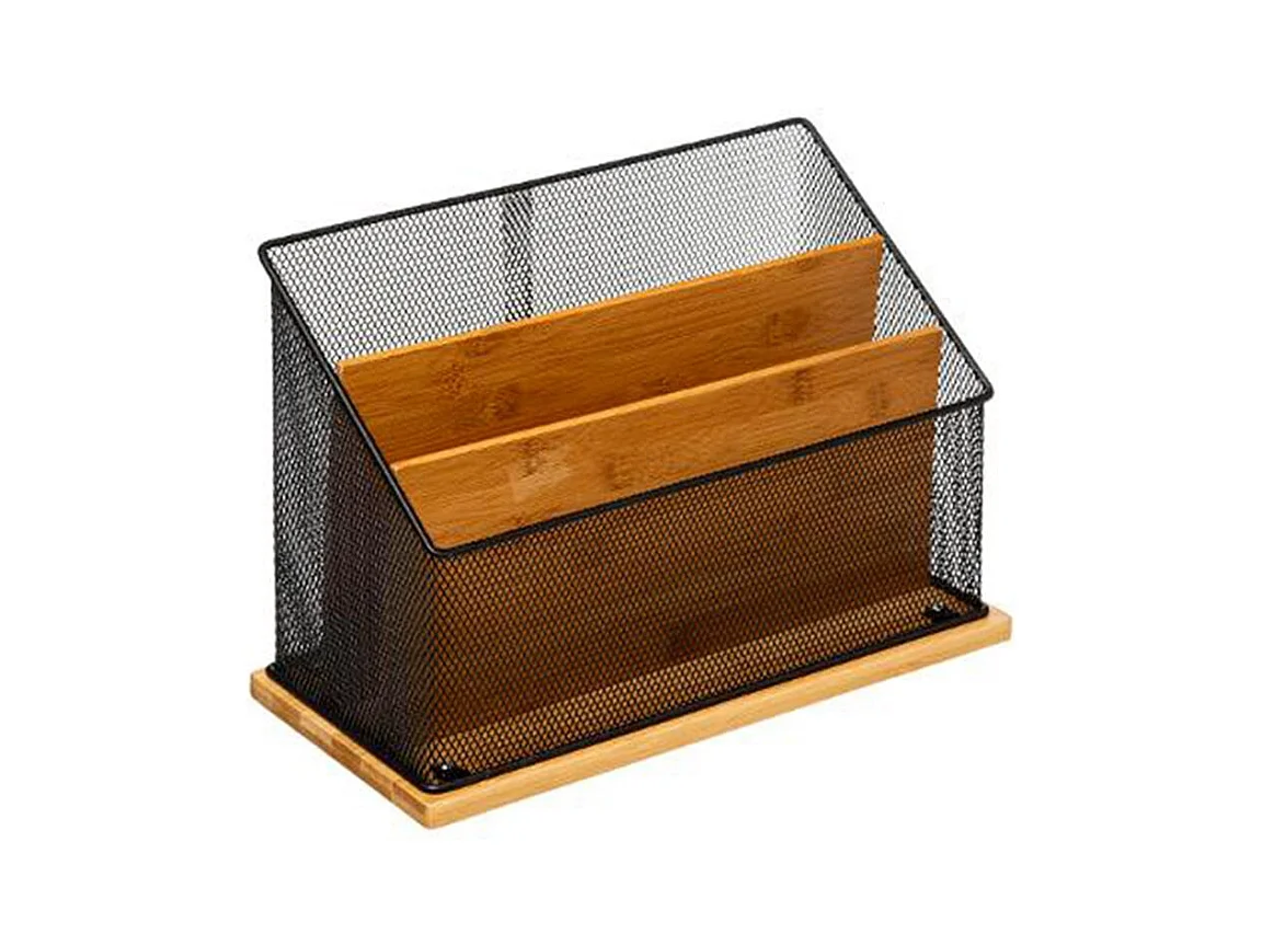 Organiseur Bureau "Métal & Bambou" 29cm Noir