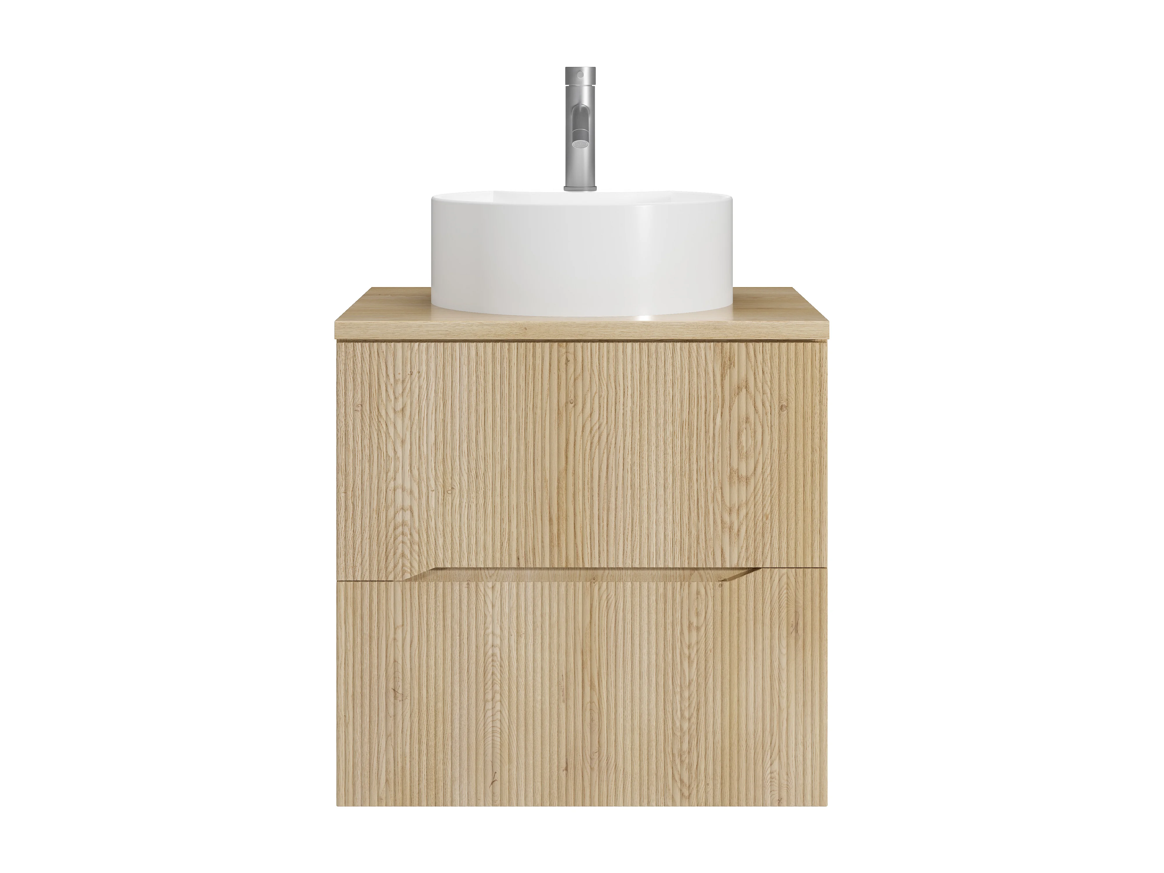 Meuble de salle de bain suspendu strié avec vasque à poser ronde et robinet - Naturel clair - 60 cm - ORISO