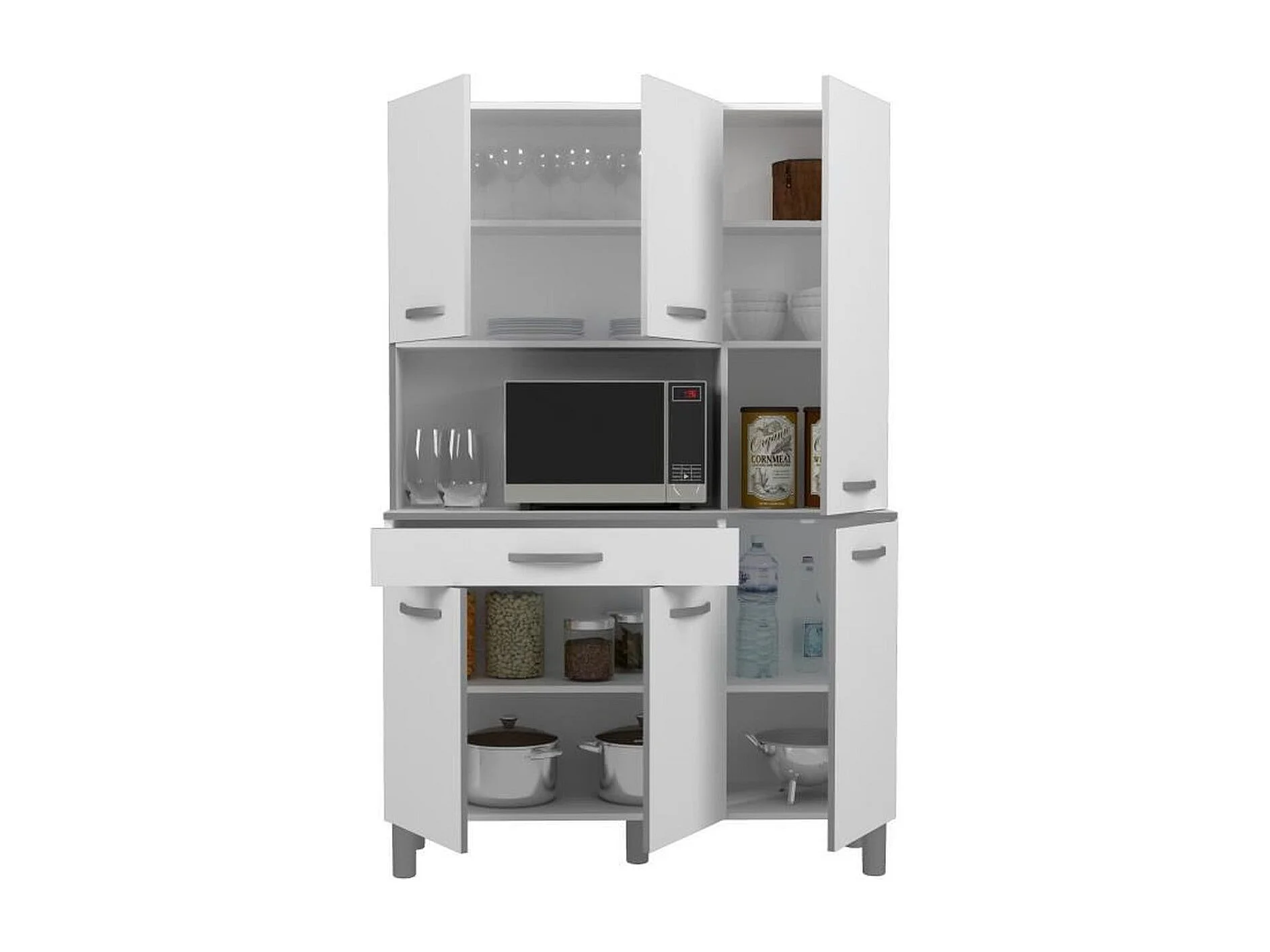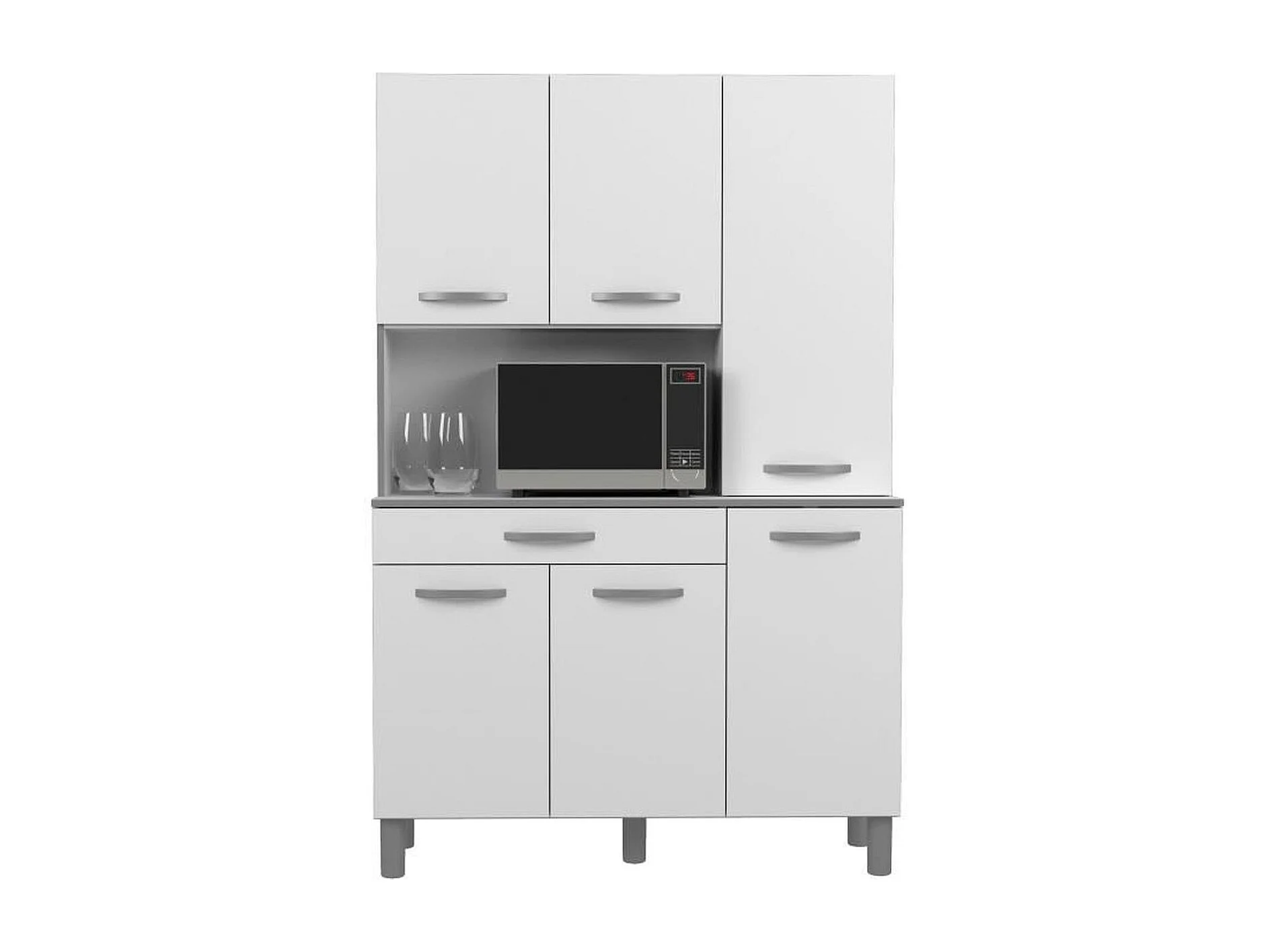 Buffet de cuisine EKIPA OSLO 120 cm - 1 tiroir, 6 portes et niche - Blanc laqué