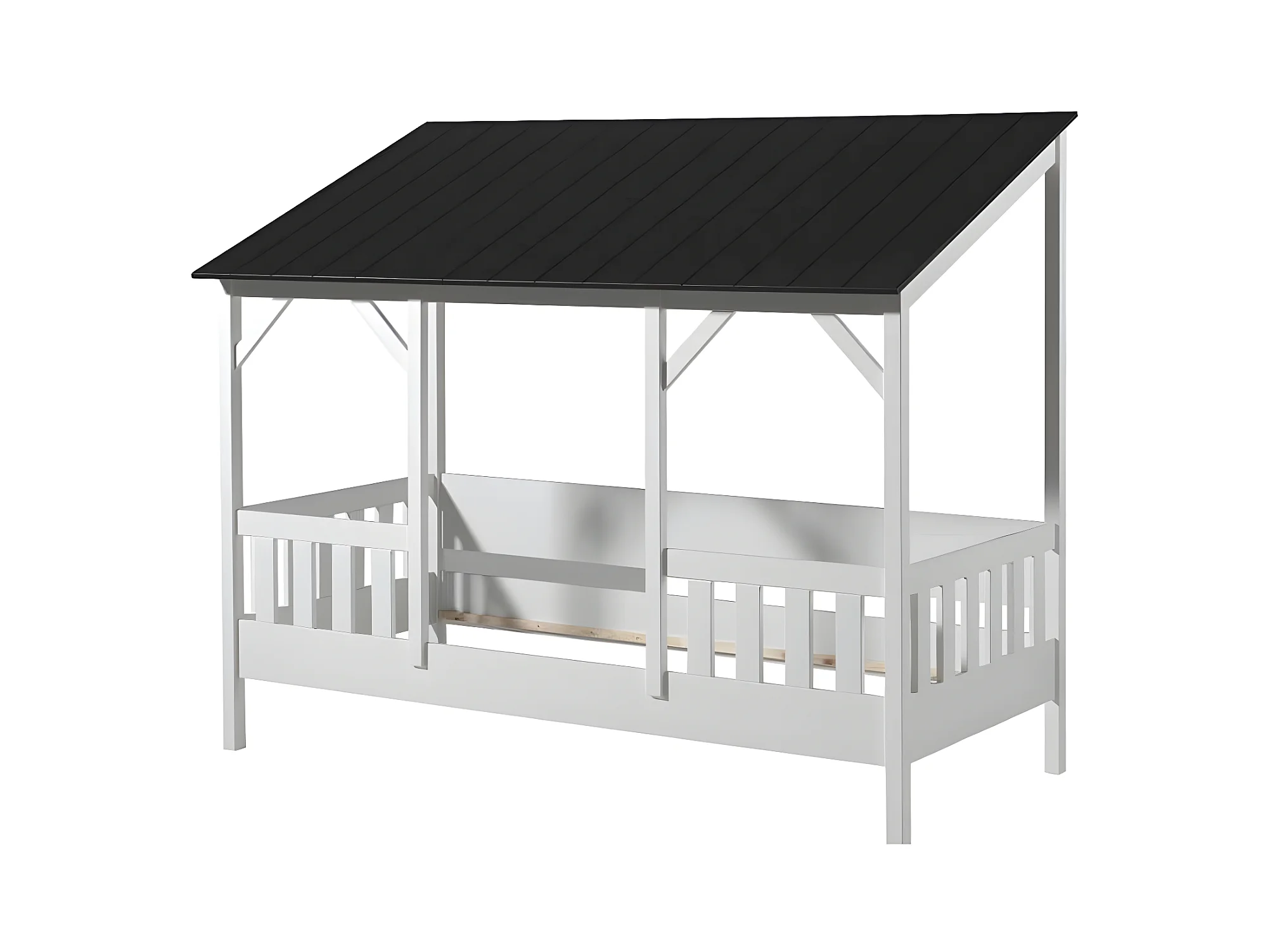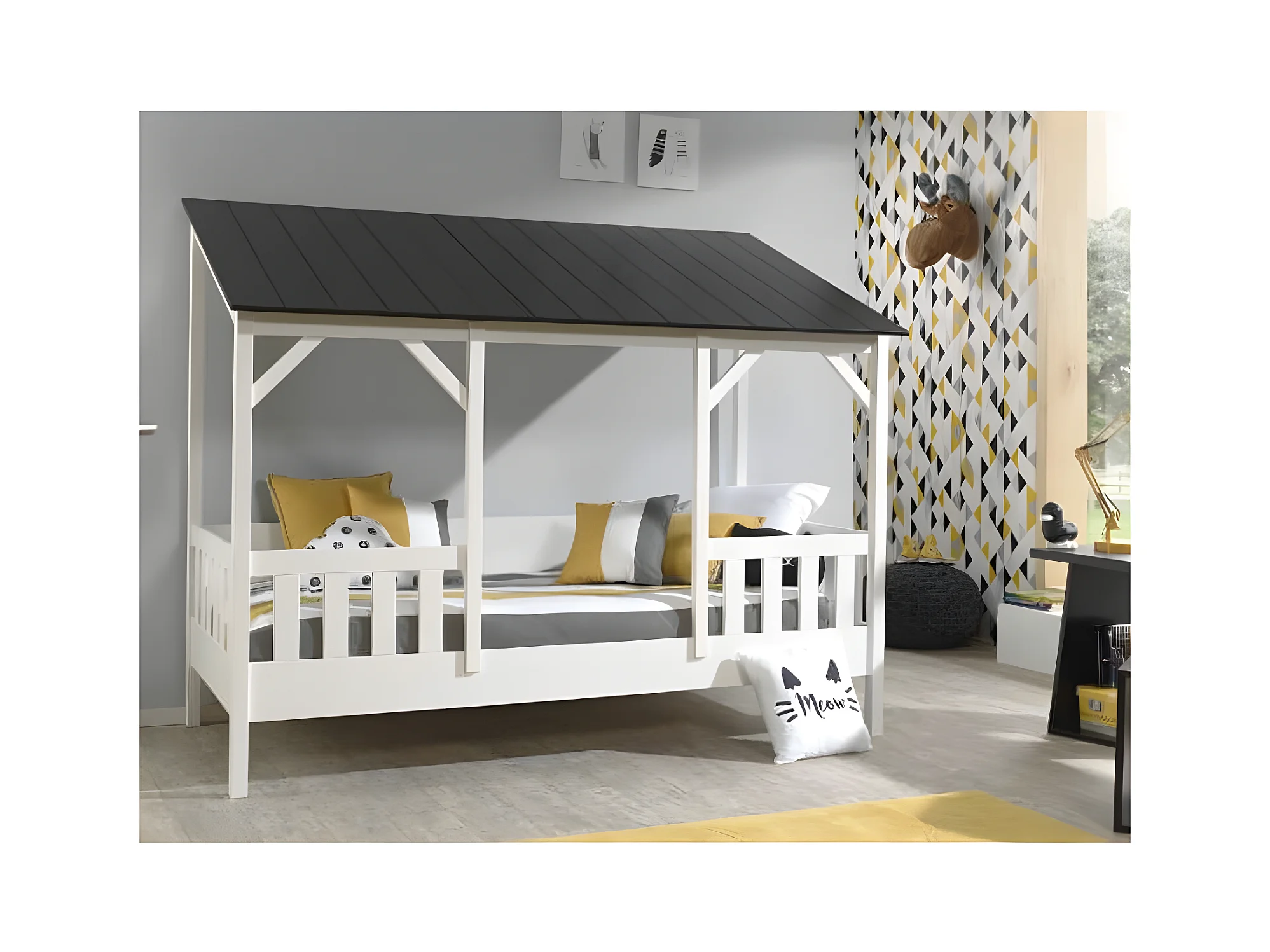 Lit Cabane Enfant en Bois "Housebed III" 90x200cm Blanc & Noir