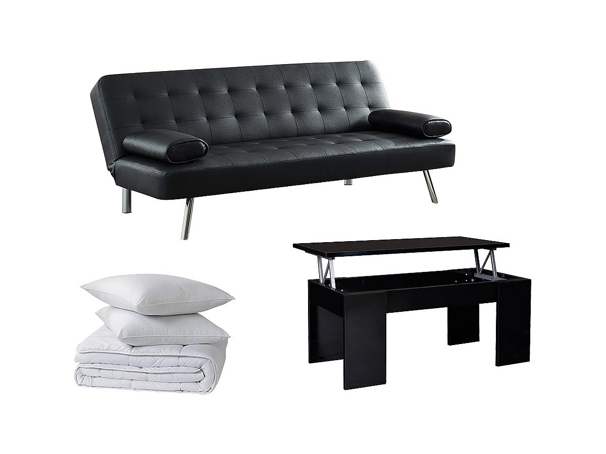 Pack STUDIO 5 produits : clic-clac MICHELLE noir, table basse, couette et 2 oreillers