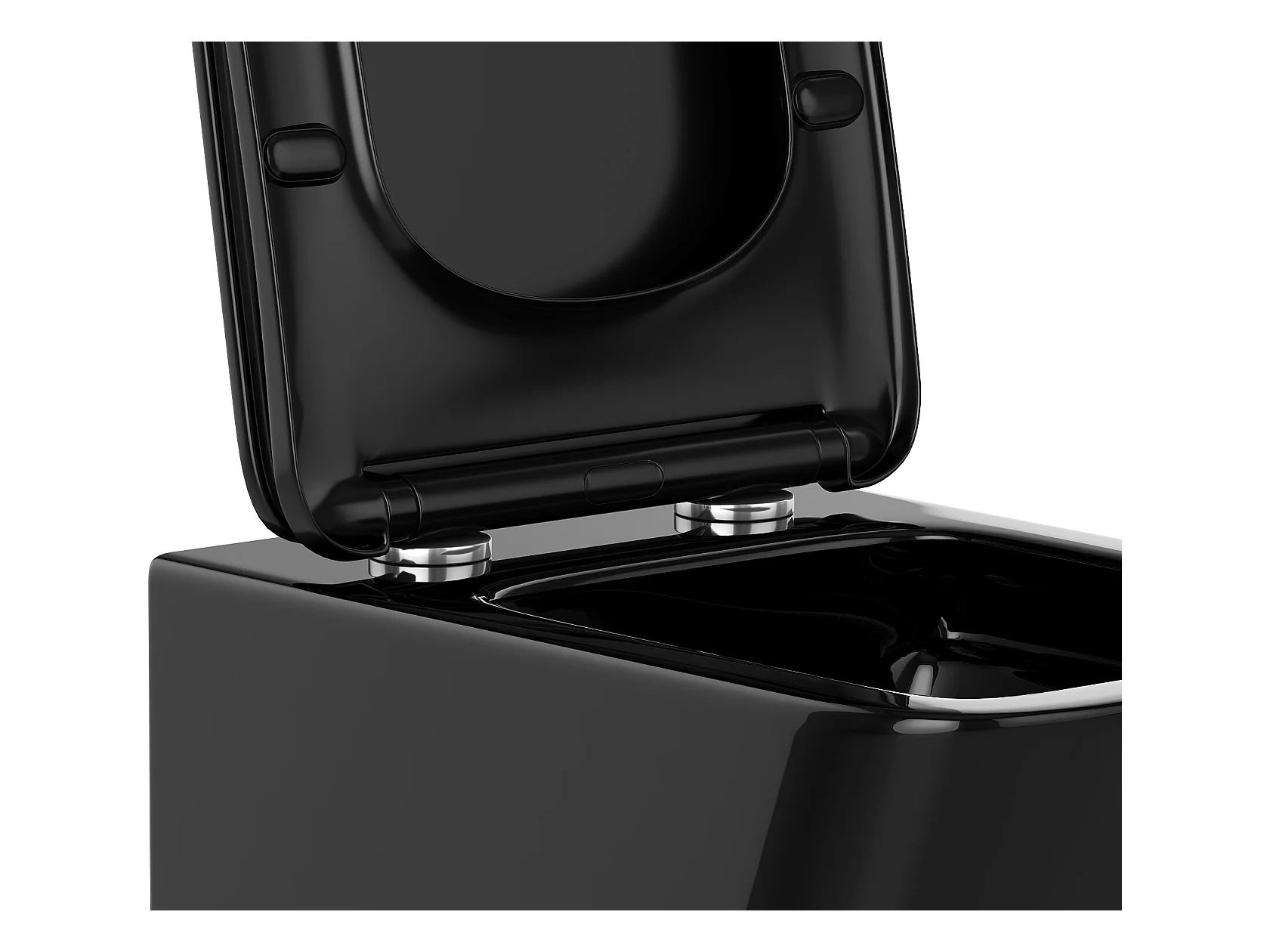 Pack WC suspendu en céramique noir brillant avec bâti-support et plaque de déclenchement ronde - CLEMONA