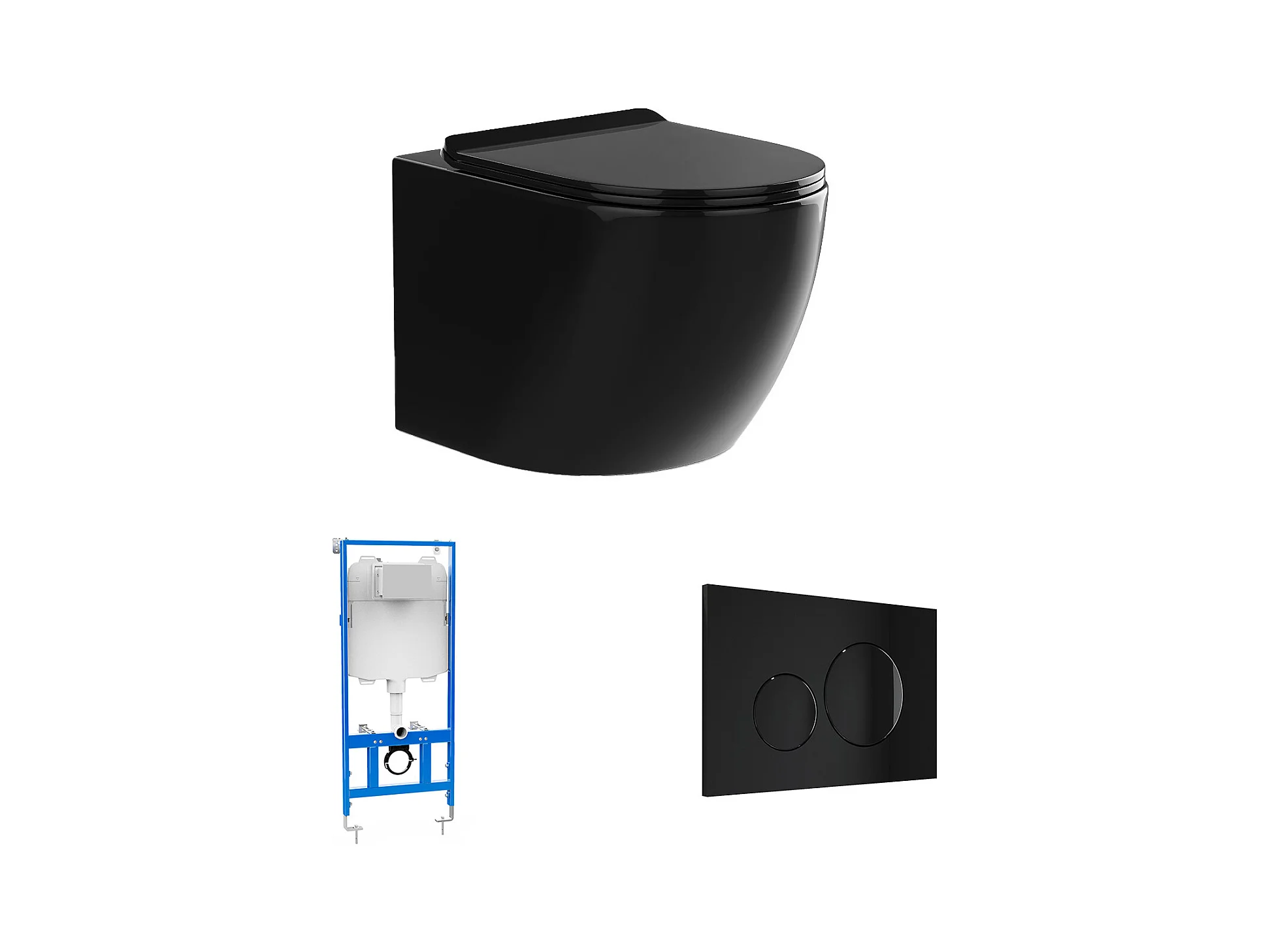 Pack WC suspendu noir brillant avec bâti-support et plaque de déclenchement - JAVOINE