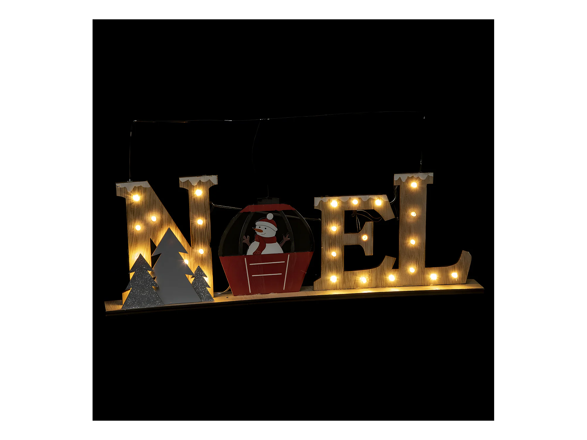 Pancarte lumineuse " Noël " avec télécabine rouge 26 LED Blanc chaud L44 cm