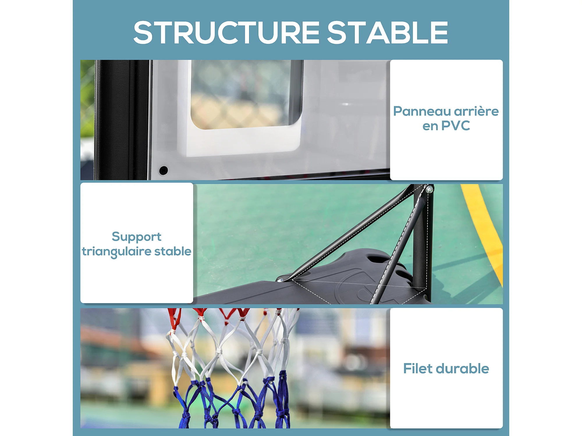 Panier de basket-ball sur pied avec base de lestage sur roulettes hauteur réglable 2,93-3,5 m acier PC noir