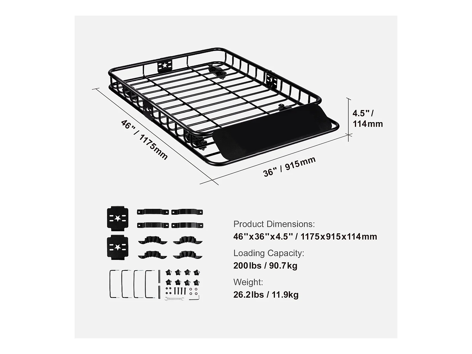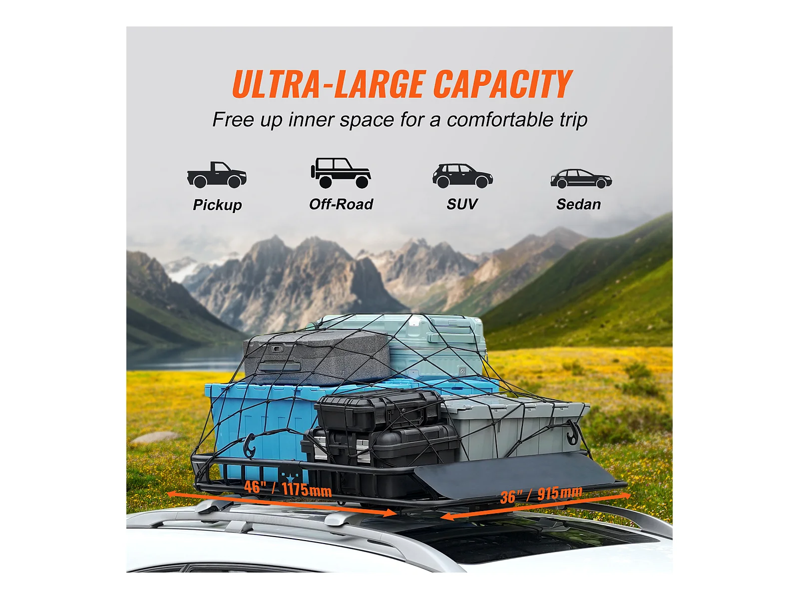 Panier de Chargement SucceBuy Panier de Toit, Capacité de 200 Lb, 116.8Cmx91.4Cmx11.4Cm pour VUS, Camion, Voitures