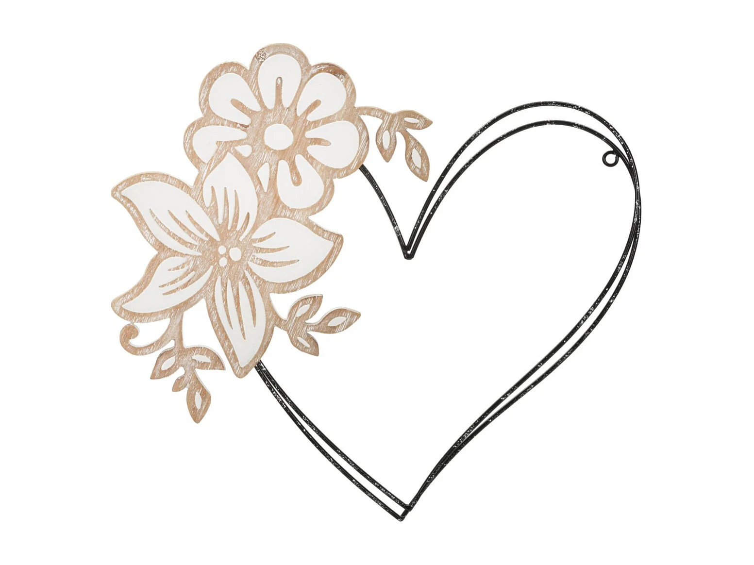 Décoration Murale en Métal "Cœur" 50cm Noir & Naturel