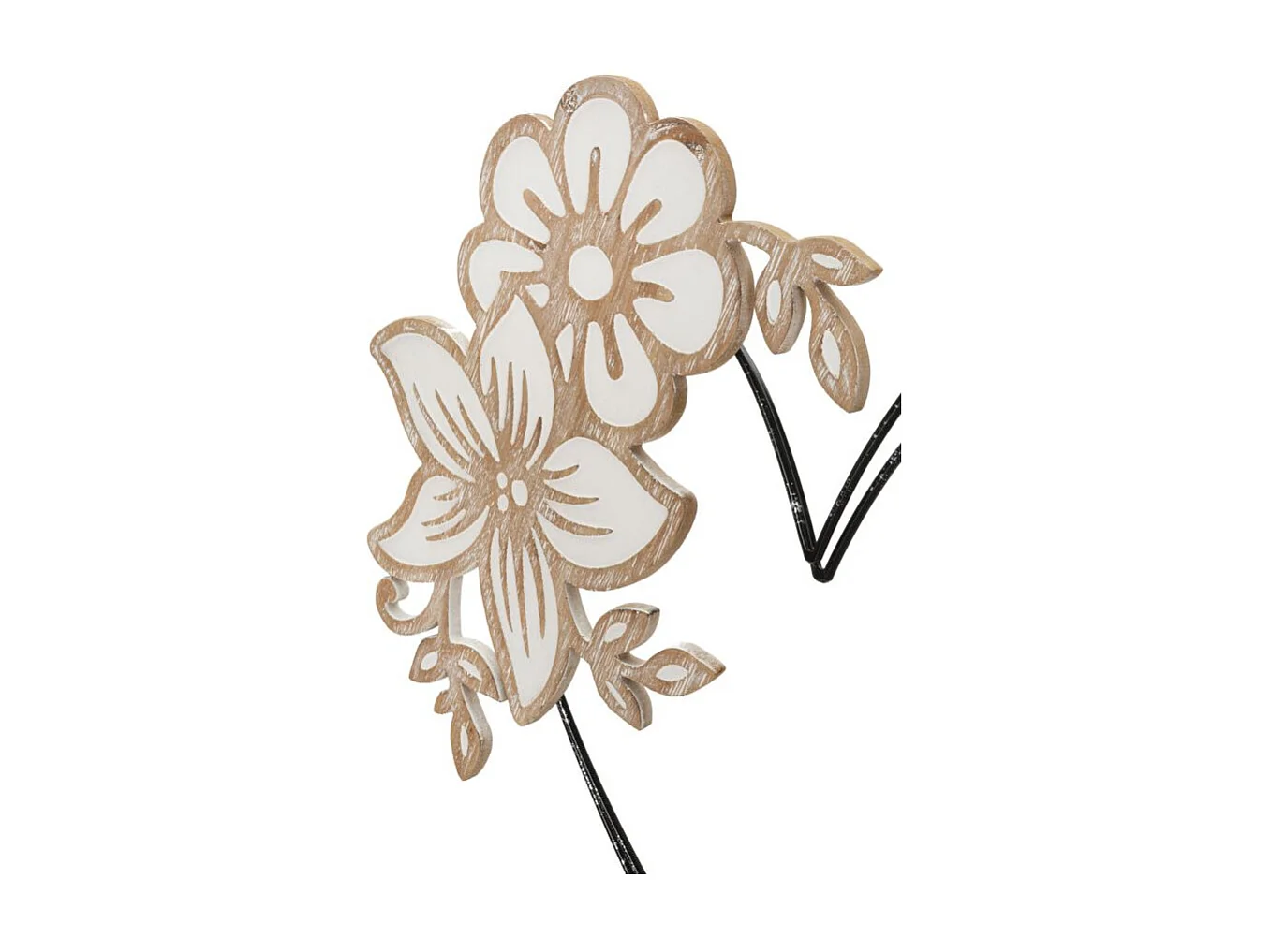Cintre mural en fer Roméo et les oiseaux avec boutons en bois, Design décoratif Made in Italy 30x130 cm, Style romantique