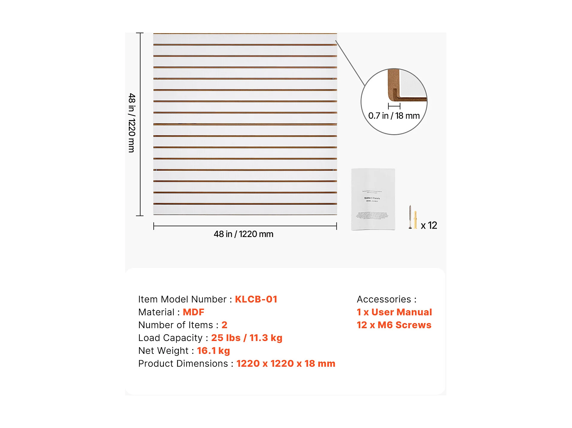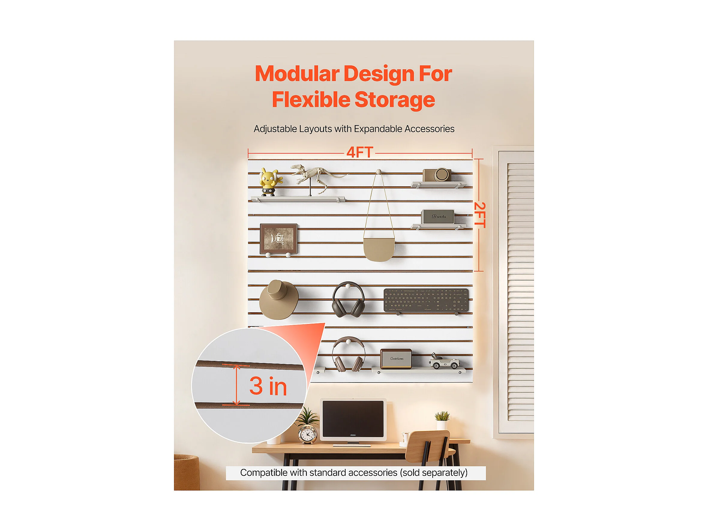 Panneau Mural à Lattes SucceBuy, 122 x 122 cm, Lattes de Garage en MDF Blanc, Conception Modulaire