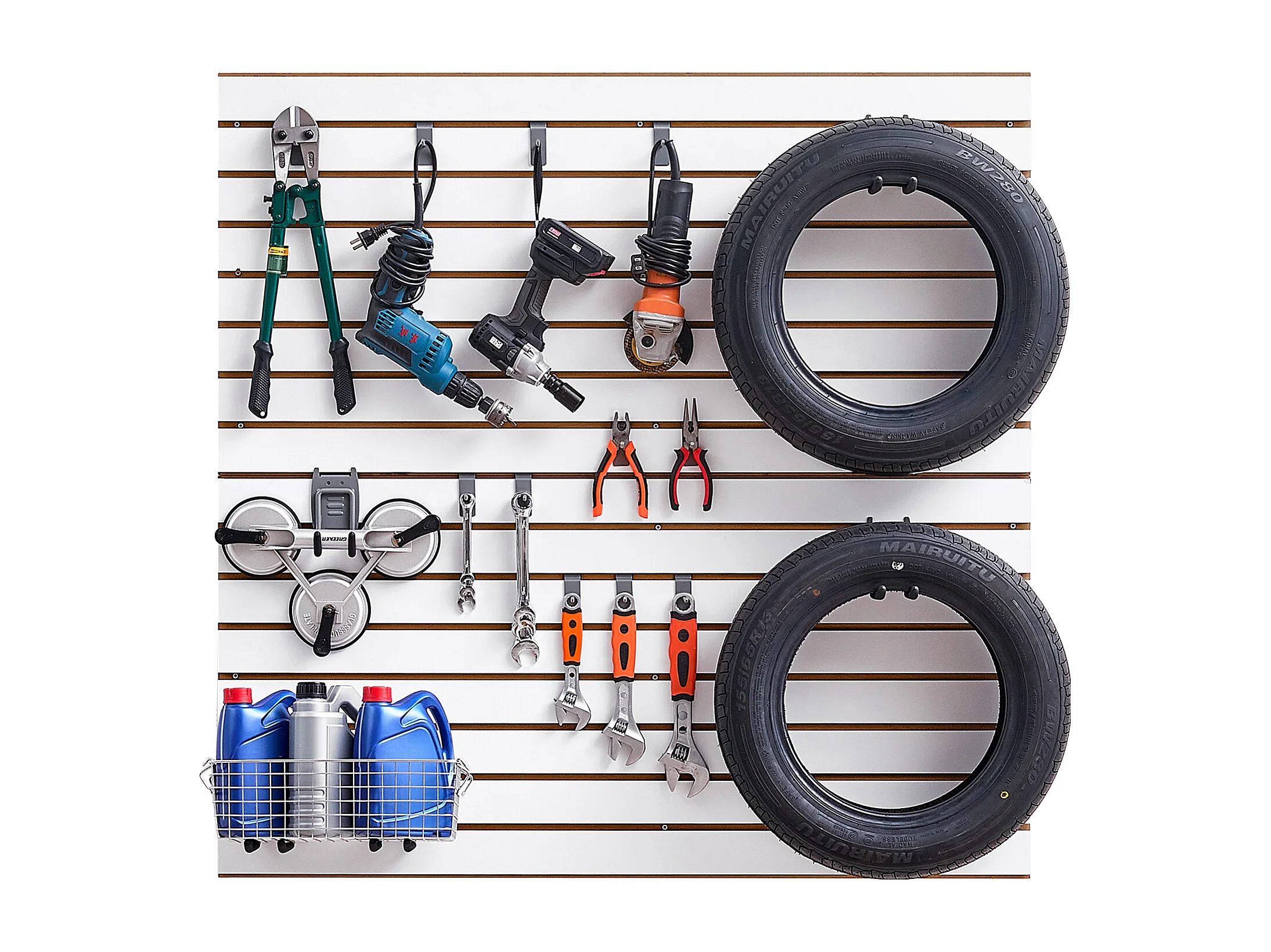 Panneau Mural à Lattes SucceBuy, 122 x 122 cm, Lattes de Garage en PVC Blanc, Conception Modulaire