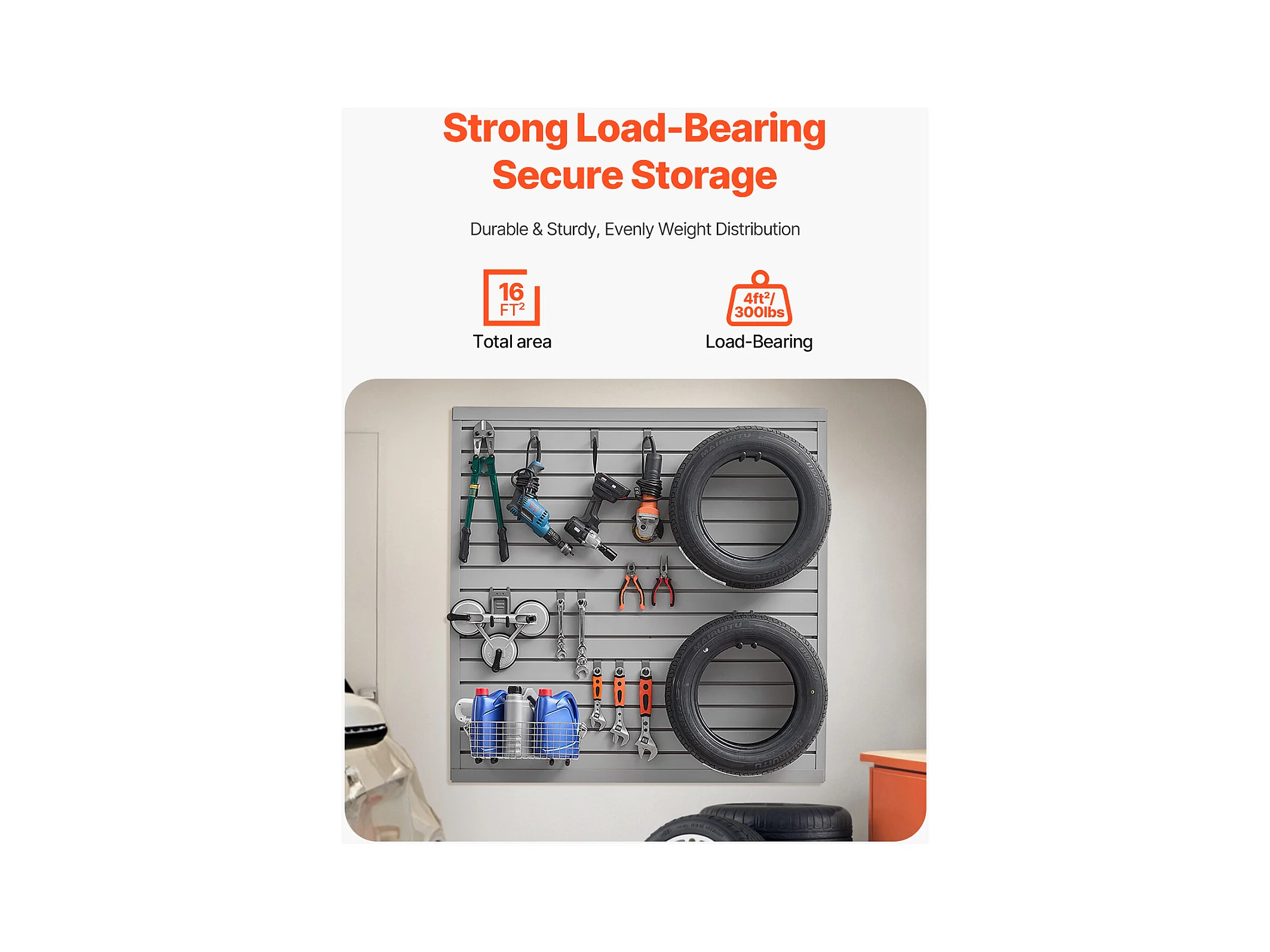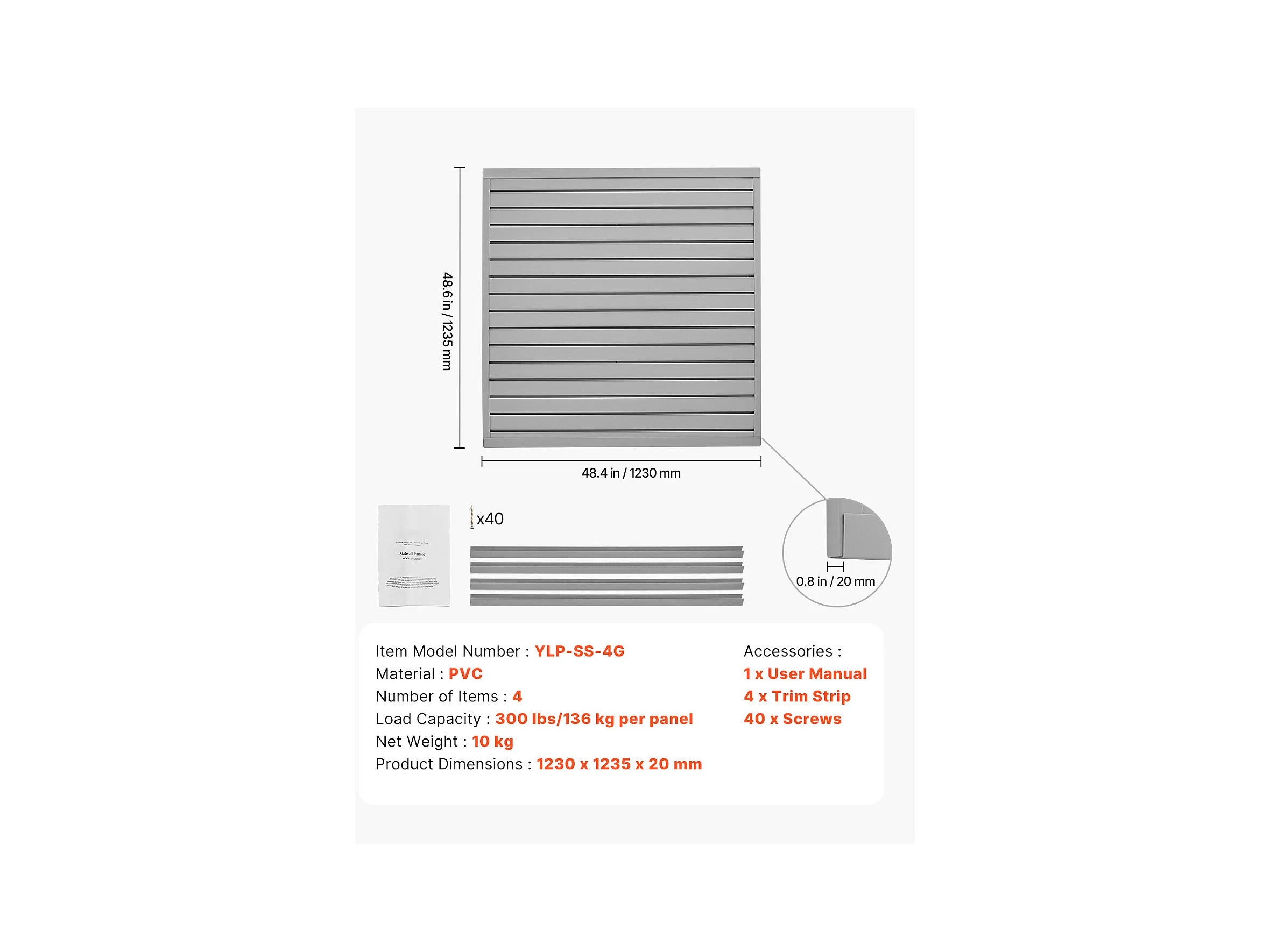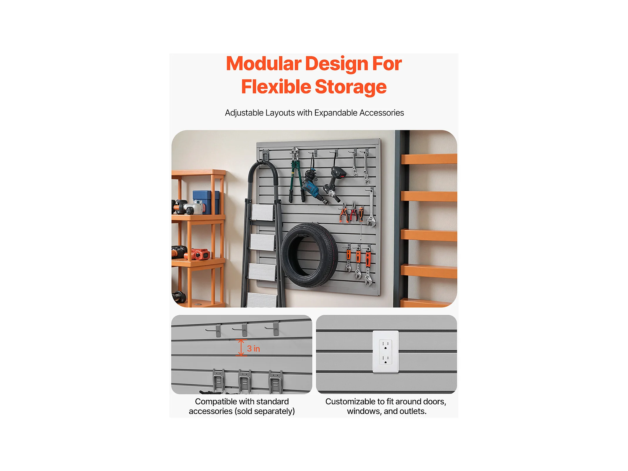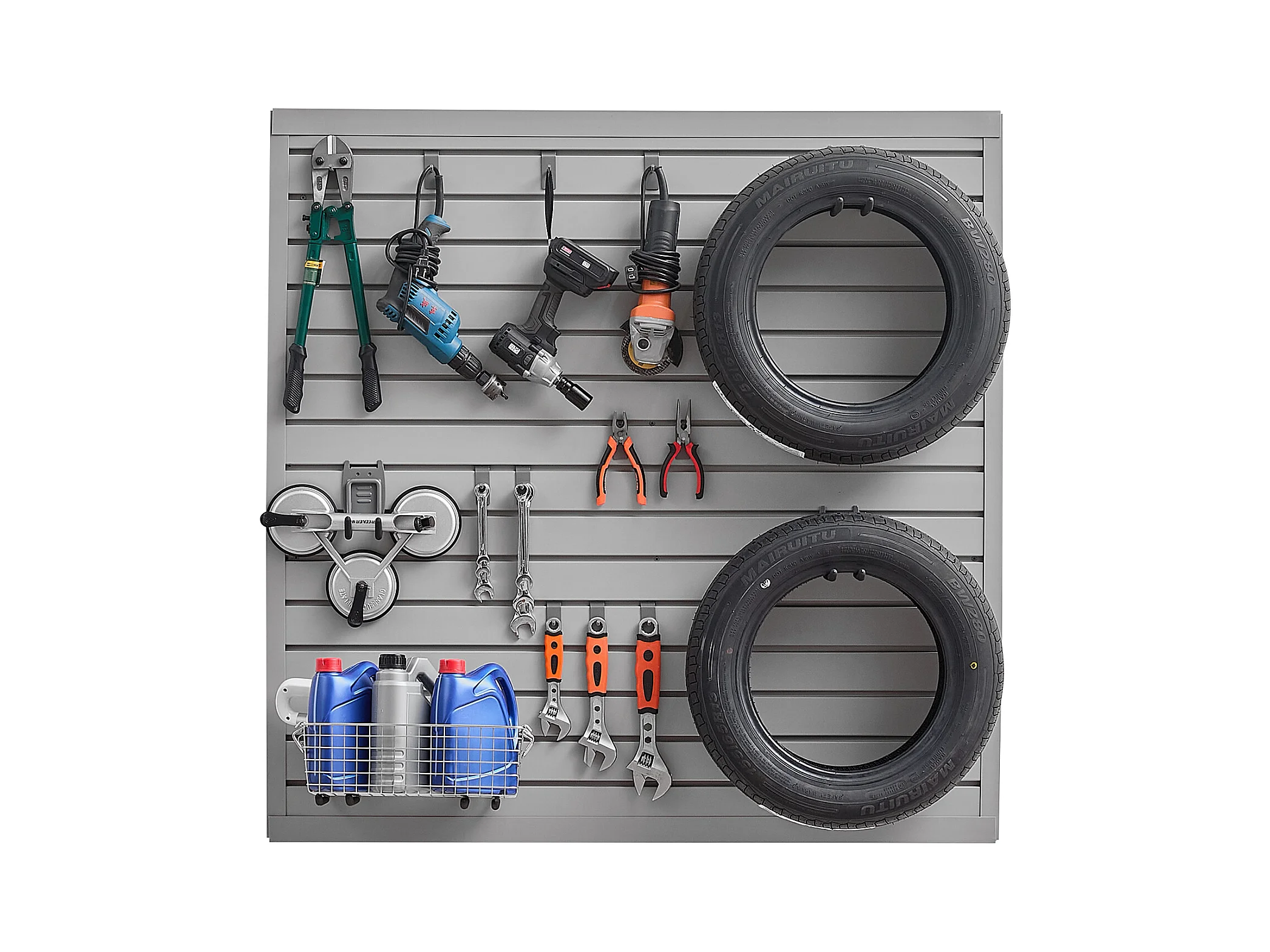 Panneau Mural à Lattes SucceBuy, 122 x 122 cm, Lattes de Garage en PVC Gris, Conception Modulaire