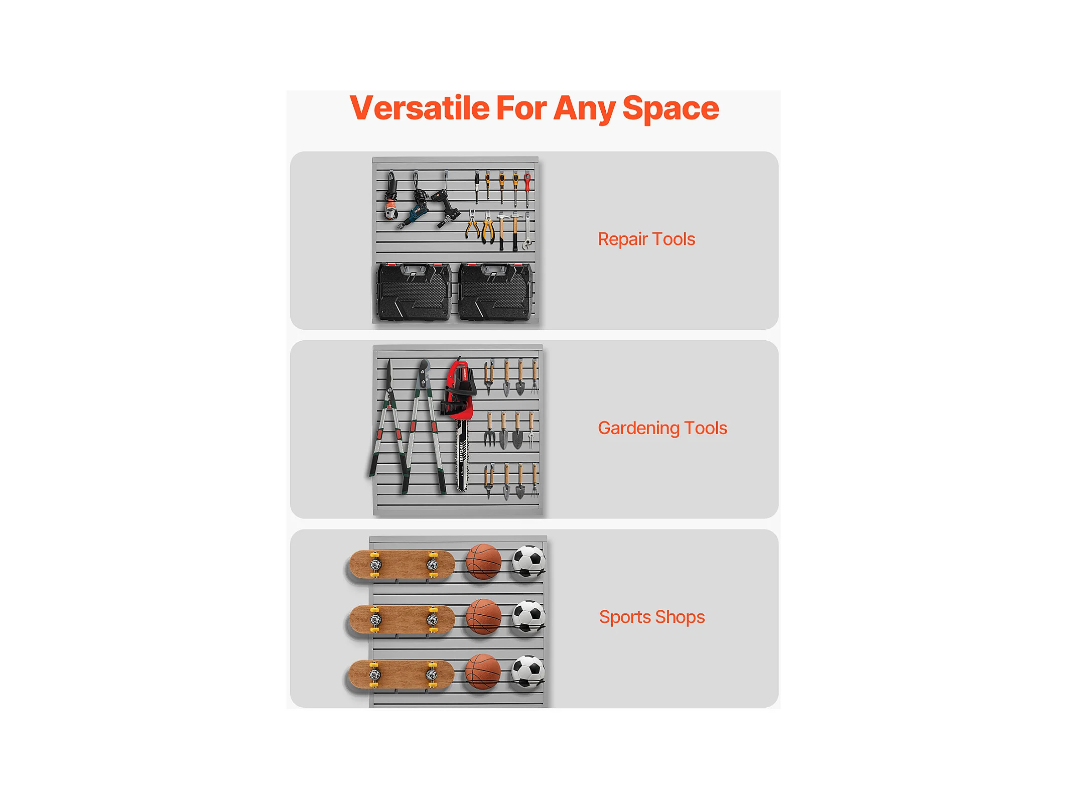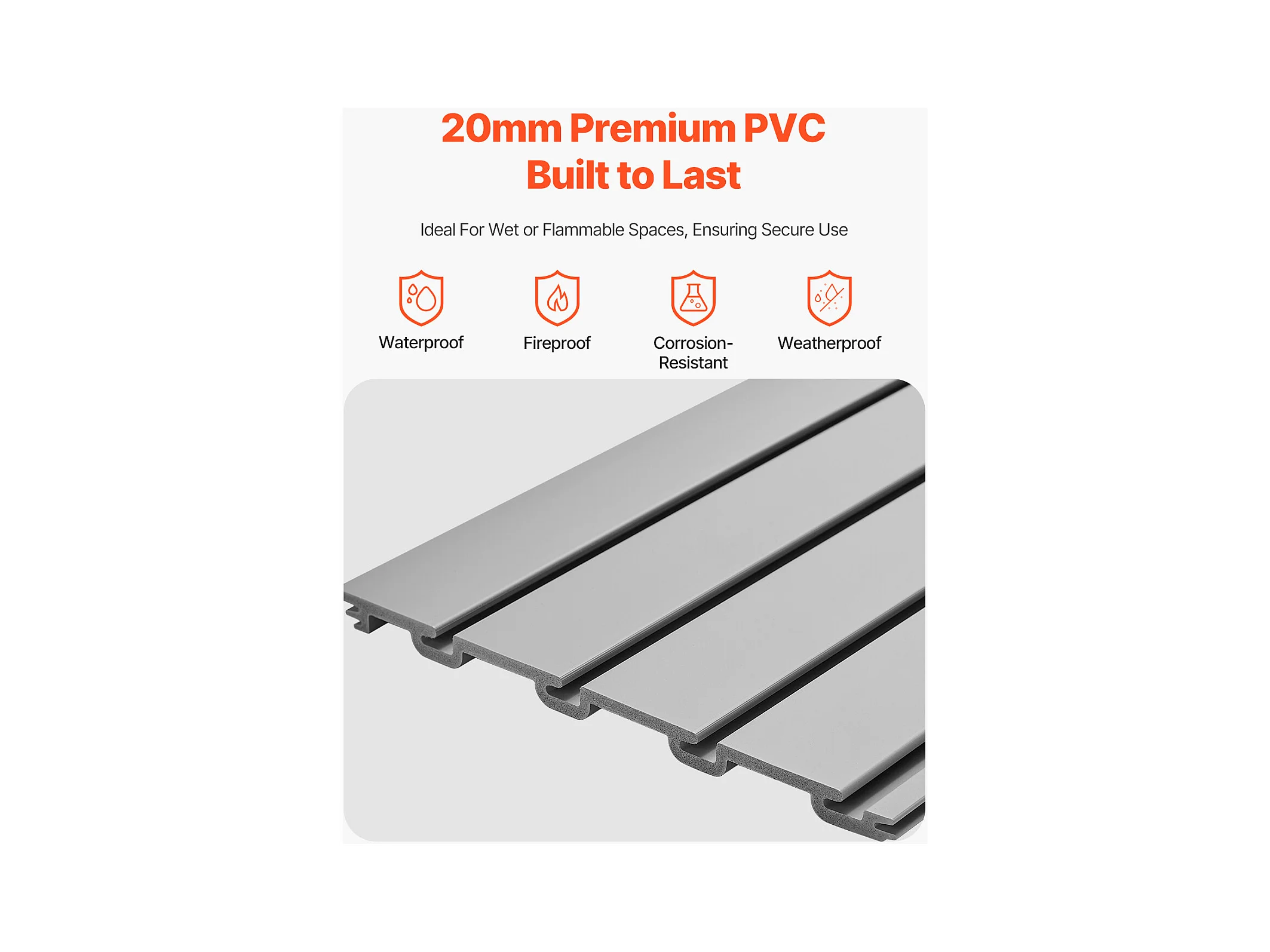 Panneau Mural à Lattes en PVC SucceBuy, 244 x 122 cm, Gris, avec Accessoires, Découpe à Faire Soi-même pour le Rangement et l'Affichage