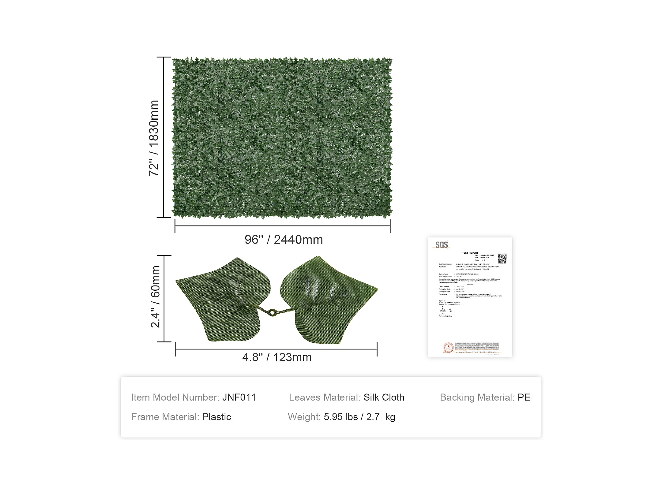 Panneaux de Buis Artificiels SucceBuy 244x183 cm, Clôture de Confidentialité en Feuilles de Lierre Artificielles