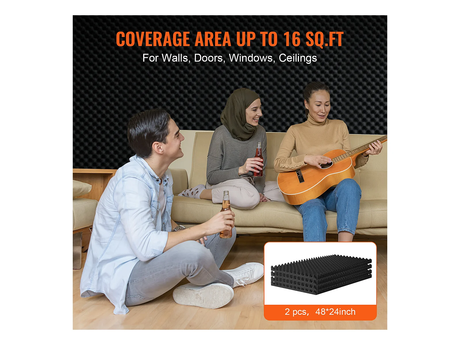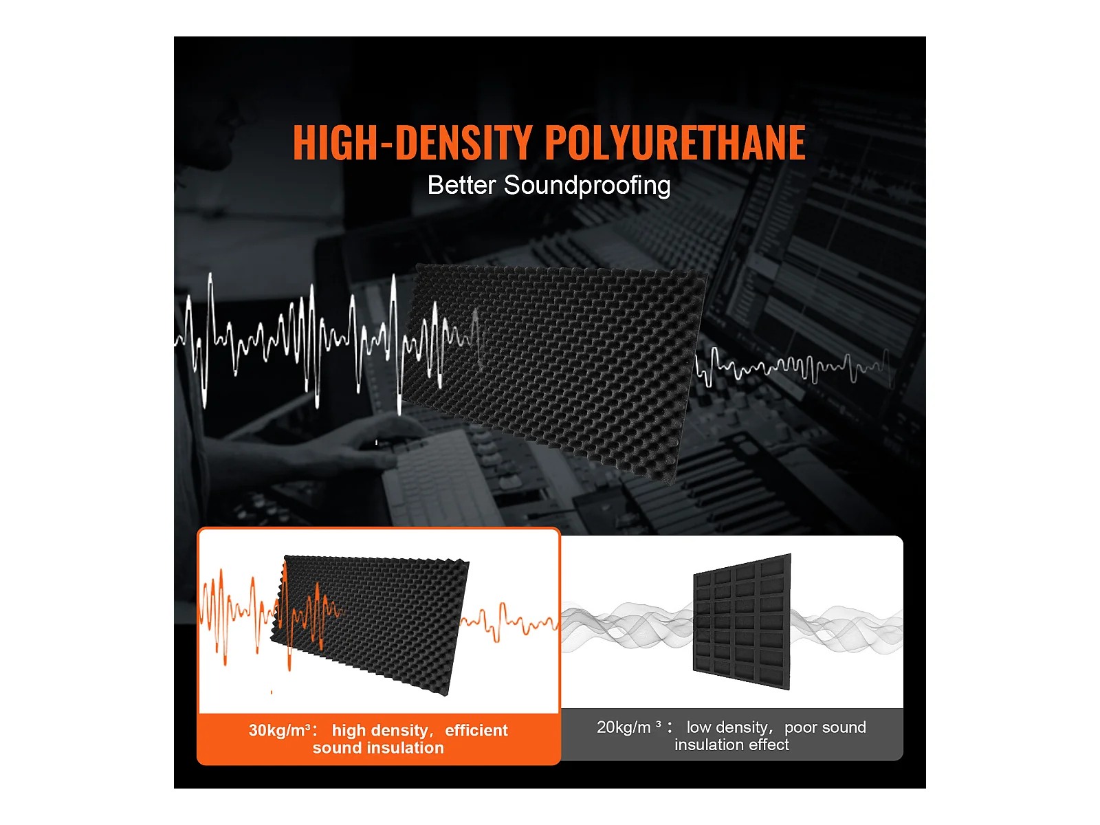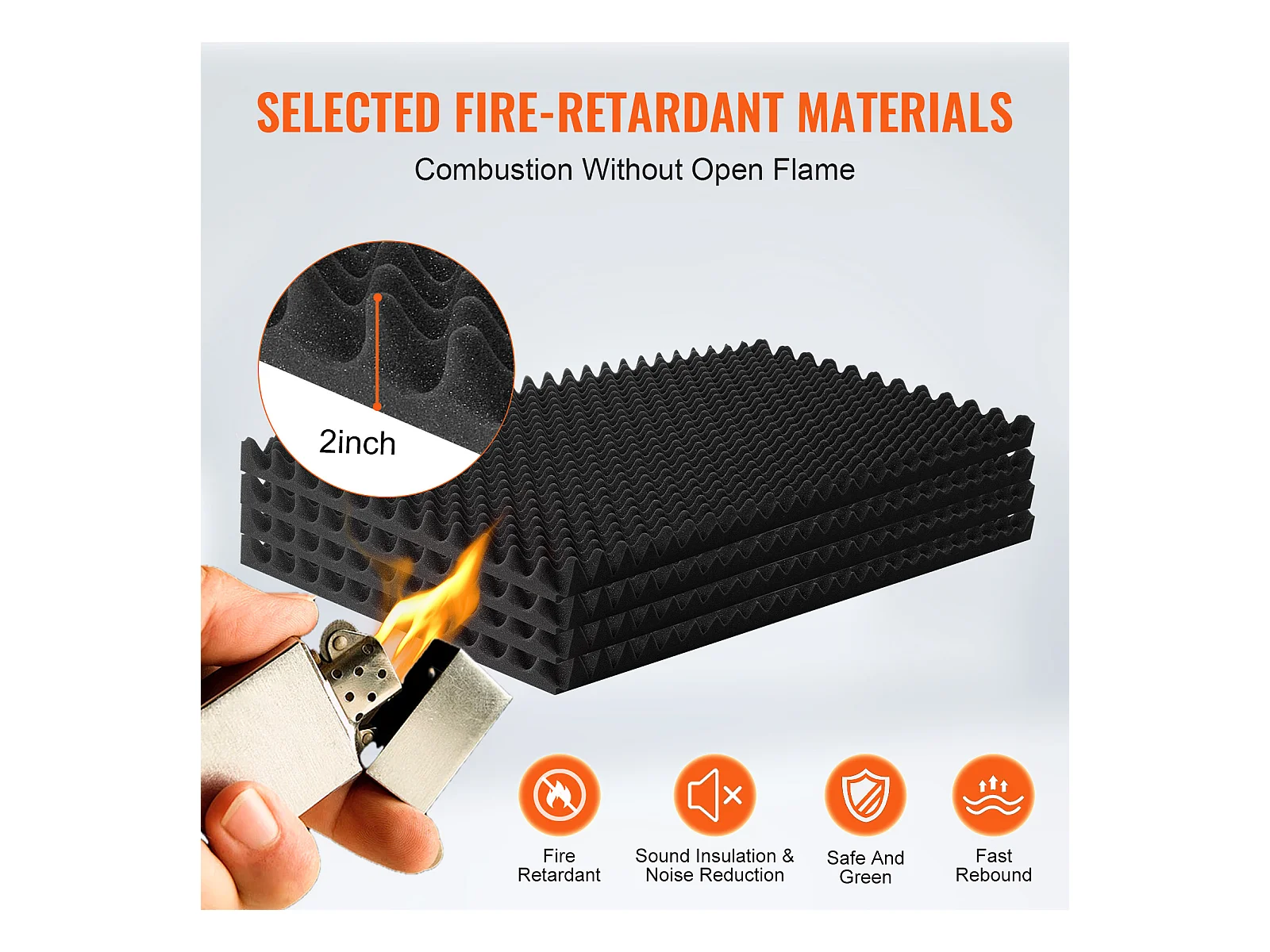 Panneaux en Mousse Acoustique SucceBuy, Lot de 48, 30.5 x 30.5 x 5.1 cm, Adhésif pour Mur et Plafond