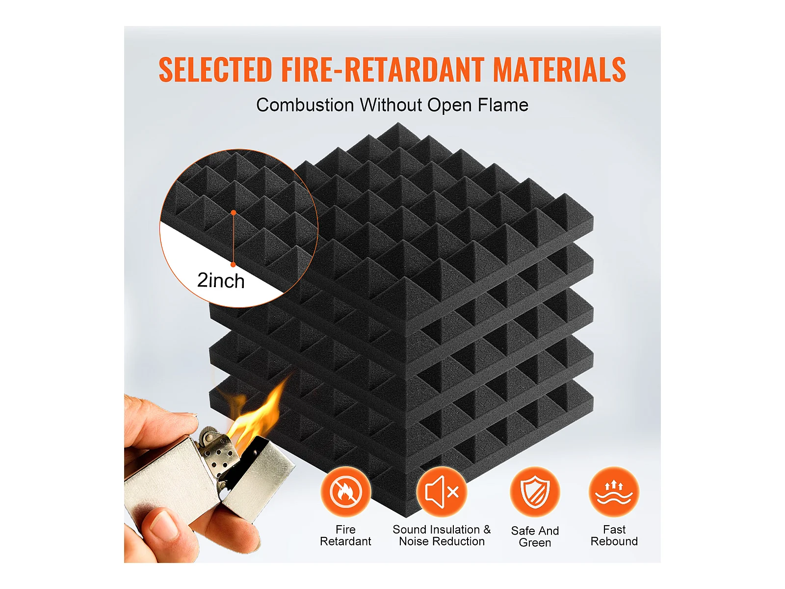 Panneaux en Mousse Acoustique SucceBuy, Lot de 48, 30.5 x 30.5 x 5.1 cm, Adhésif pour Mur et Plafond
