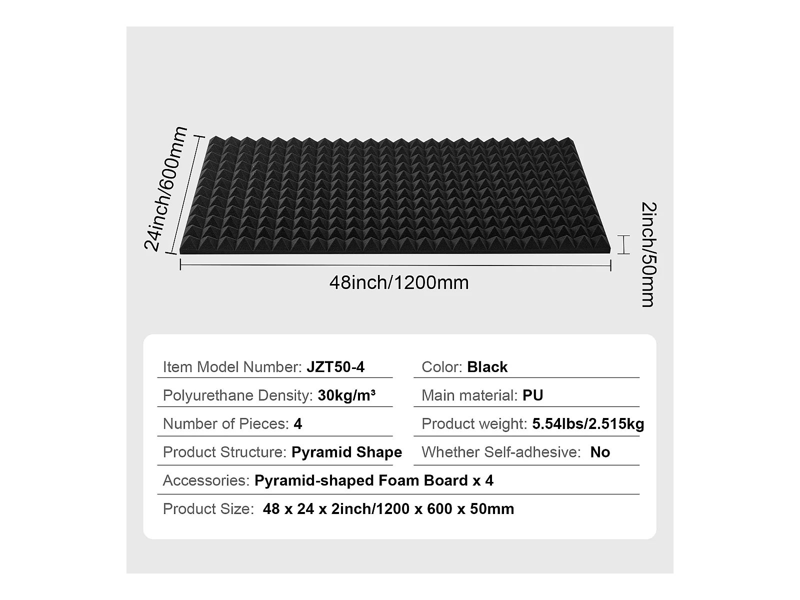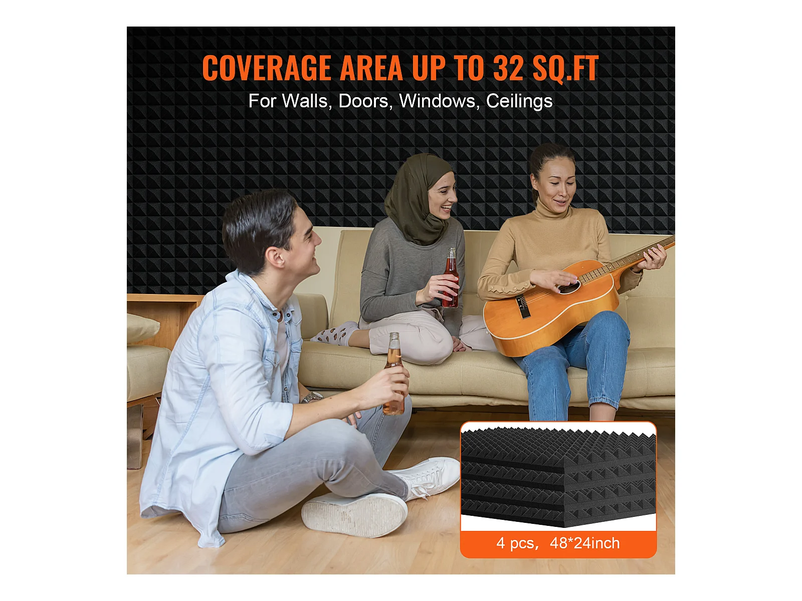 Panneaux en Mousse Acoustique SucceBuy Panneaux en Mousse Acoustique, Lot de 4, 121.92 x 60.96 x 5.08 cm pour Studio
