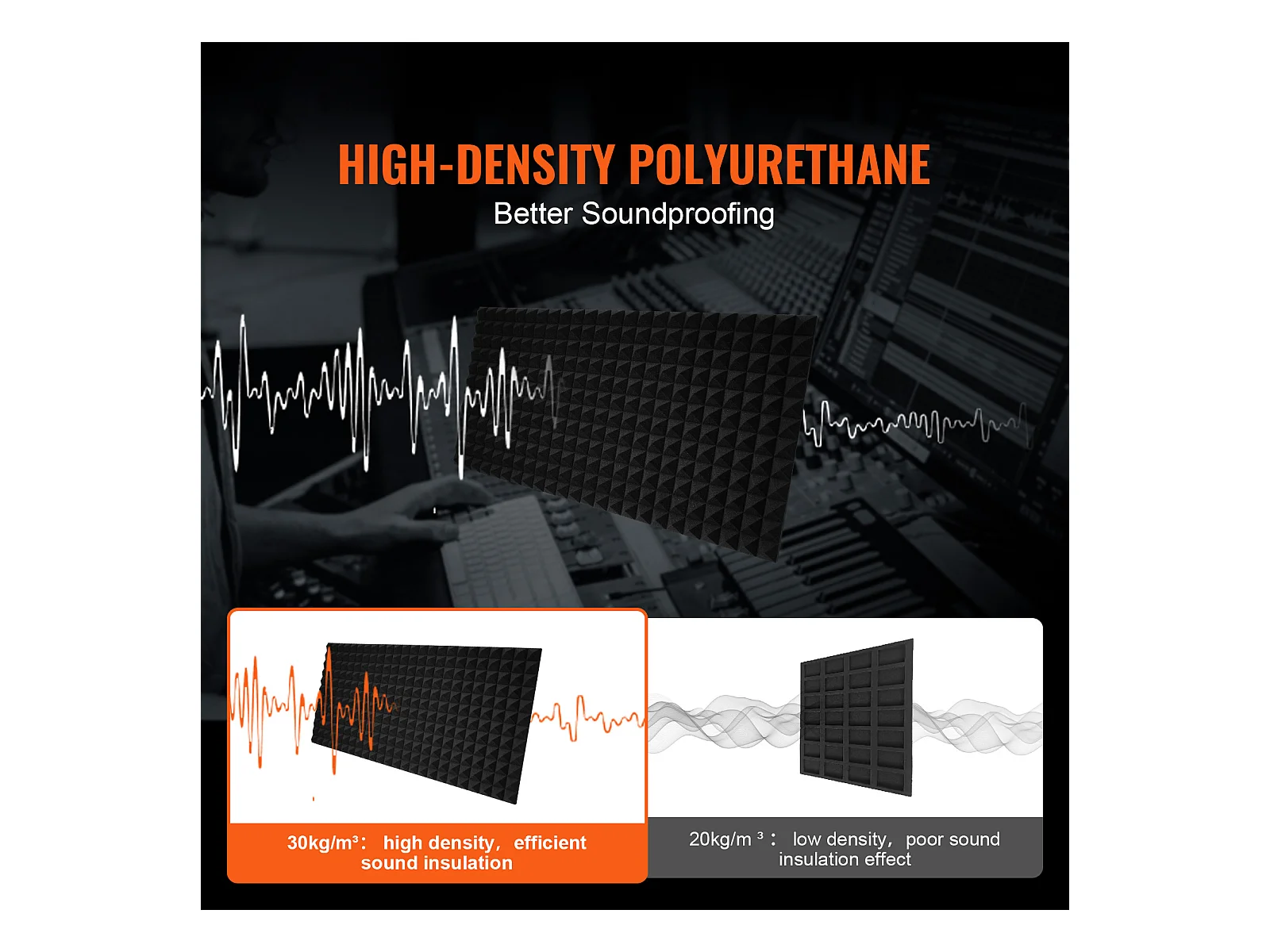 Panneaux en Mousse Acoustique SucceBuy, Lot de 48, 30.5 x 30.5 x 5.1 cm, Adhésif pour Mur et Plafond