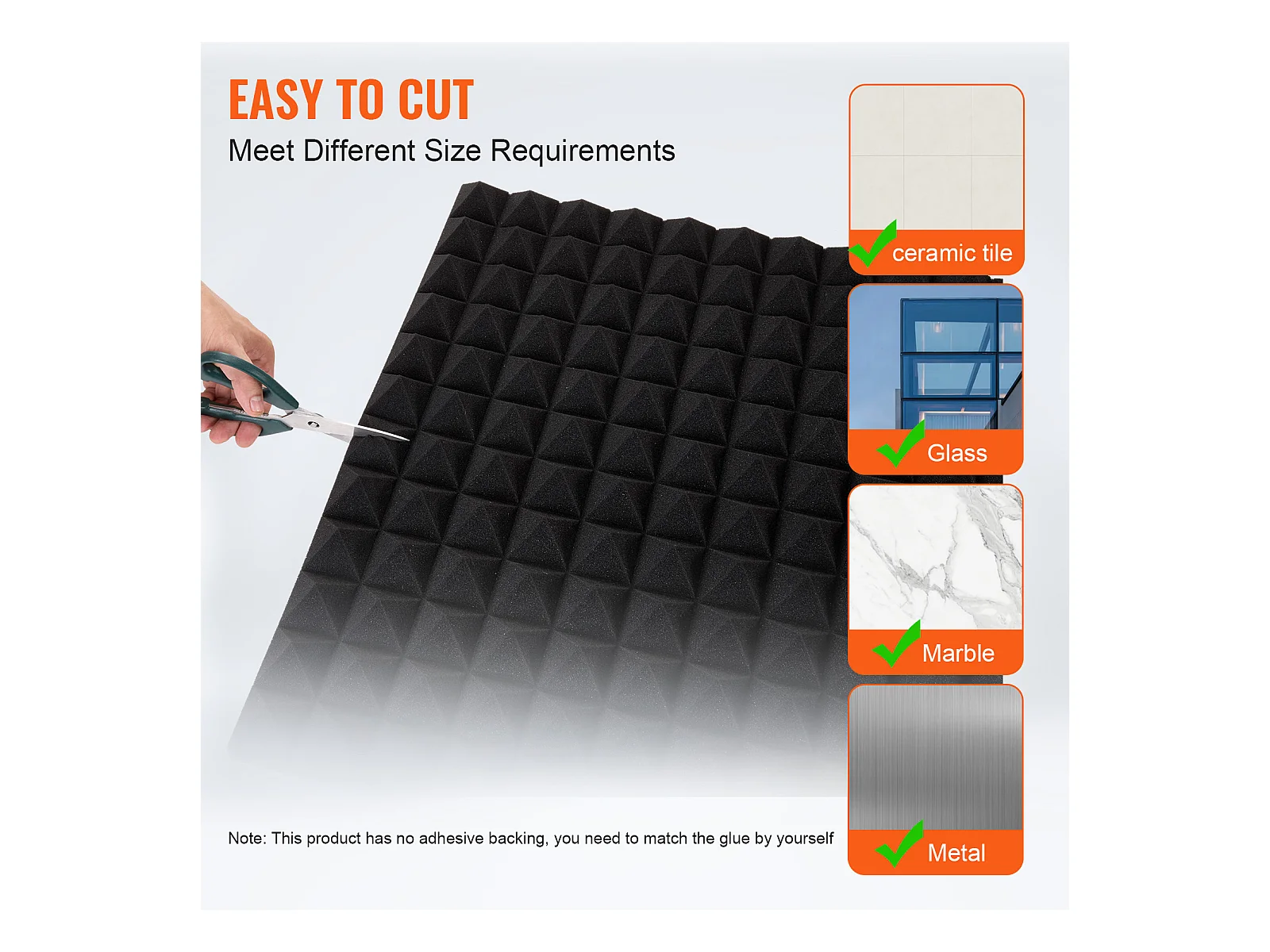 Panneaux en Mousse Acoustique SucceBuy Lot de 24 Panneaux en Mousse Acoustique 30.48 x 30.48 x 5.08 cm, Adhésif pour Studio