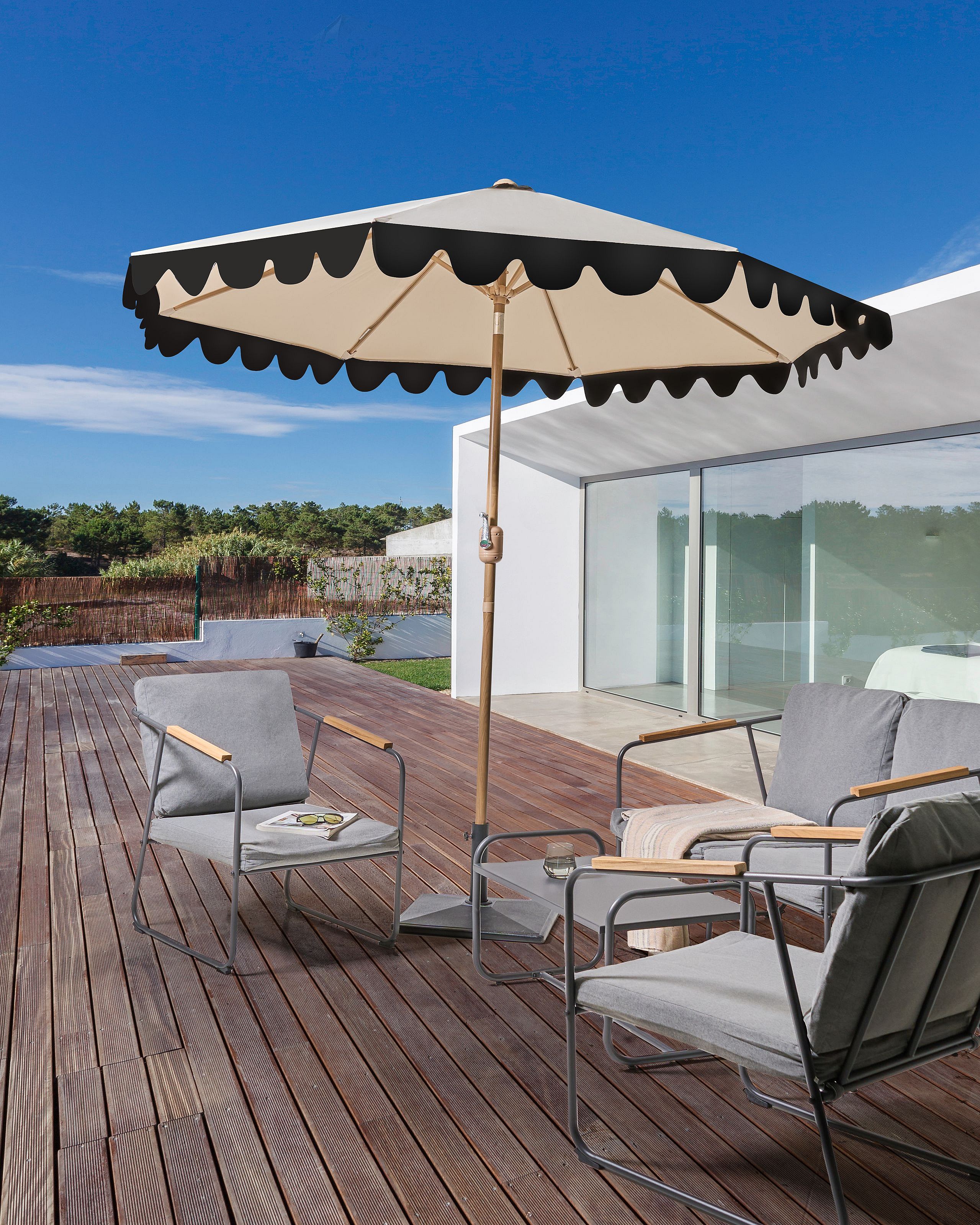 Pied de parasol rond base de lestage Ø 46 x 34 cm métal motif zig zag poids net 14 Kg noir