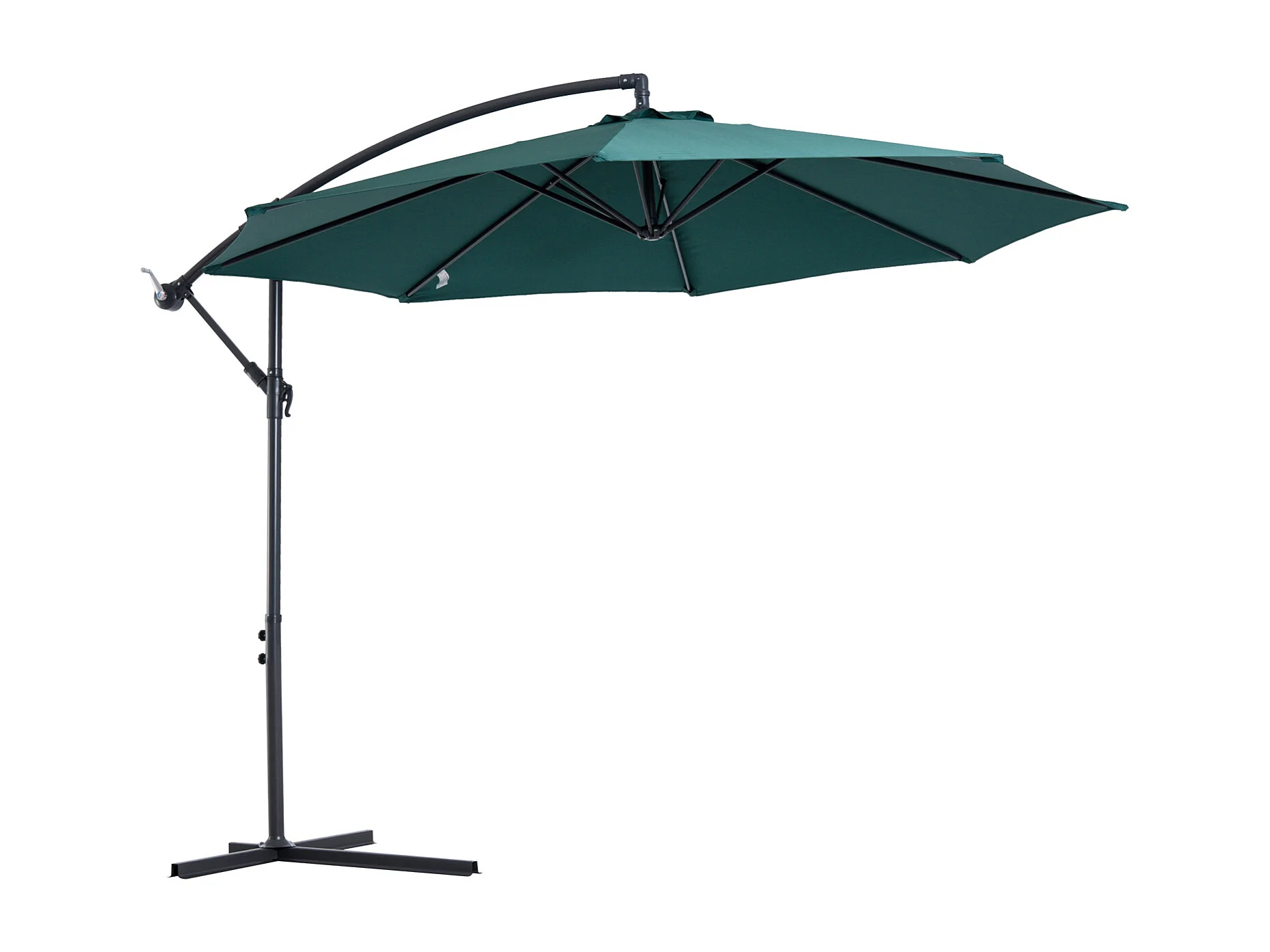 Parasol déporté octogonal inclinable manivelle pied acier Ø 3 x 2,5H m vert