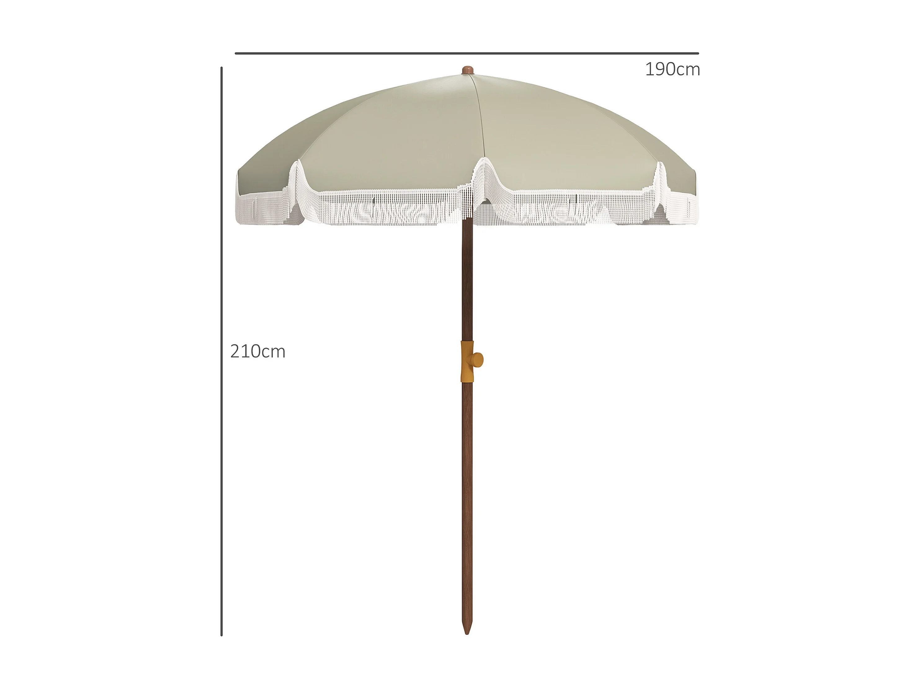 Parasol droit de plage jardin style bohème à franges UV40+ vert