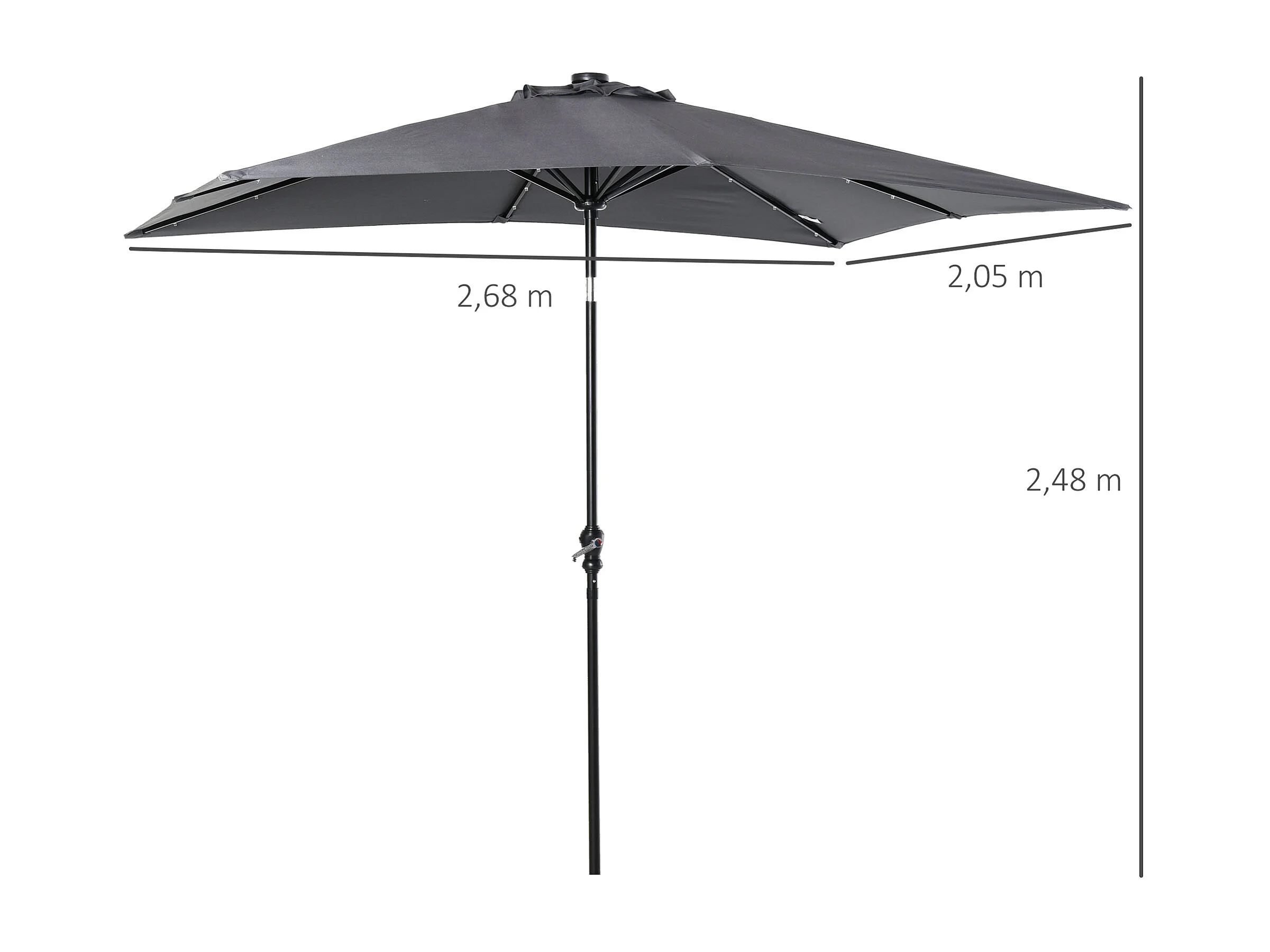 Parasol lumineux rectangulaire inclinable dim. 2,68L x 2,05l x 2,48H m parasol LED solaire métal polyester haute densité gris