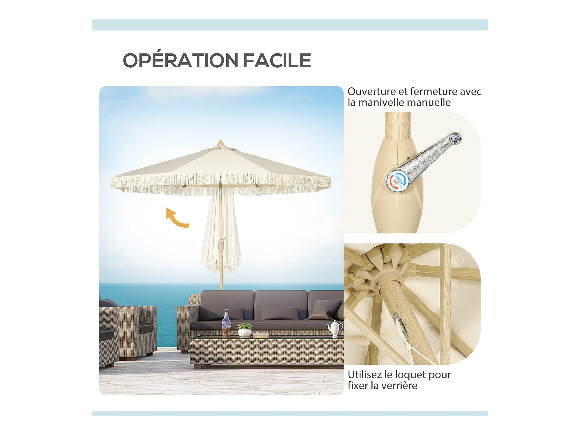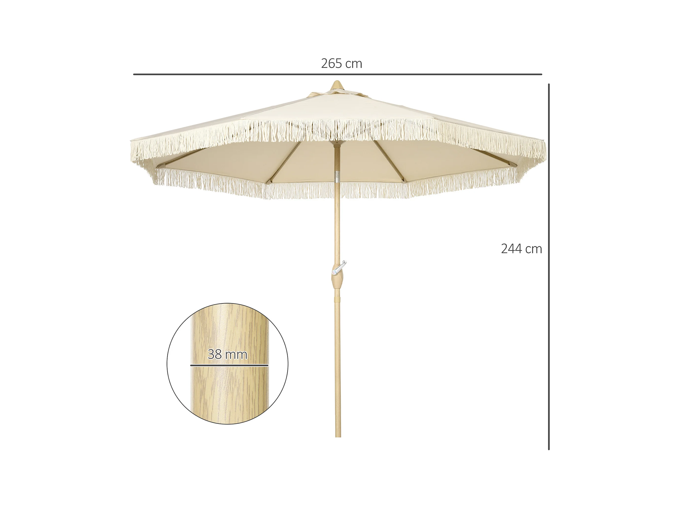 Parasol octogonal inclinable Ø 2,65 x 2,44H m mât baleine métal aspect bois polyester haute densité 180 g/m² beige