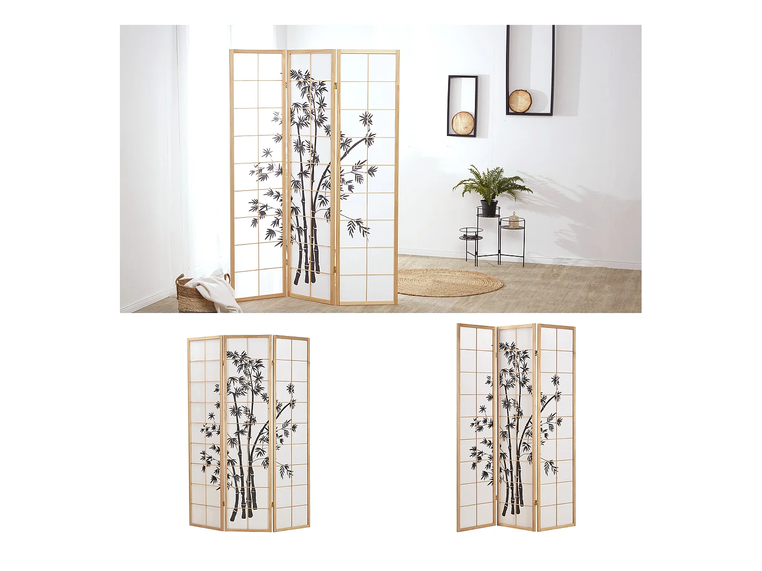 Paravent diviseur de pièce 170x120x2 cm en bois naturel