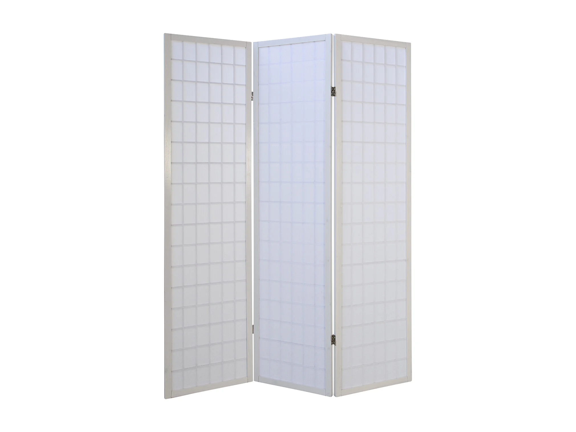 Paravent 3 volets en bois blanc, séparateur de pièce 170x120x2,2 cm
