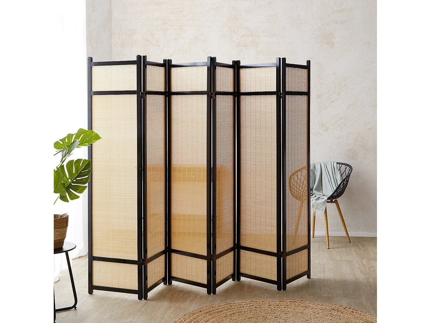 Paravent 175x264x2,2 cm noir naturel Shoji