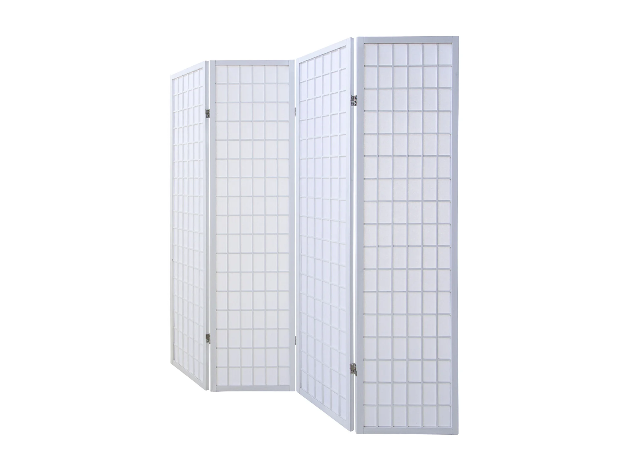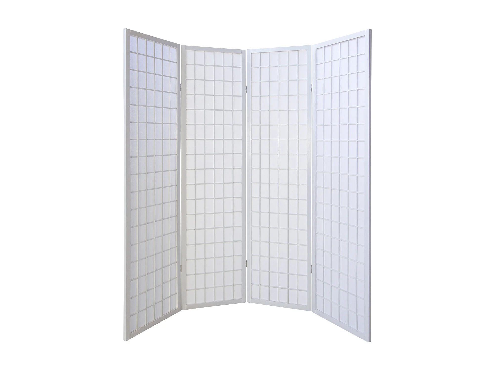 Paravent séparateur de pièce 4 panneaux pliables dim. 160L x 170H cm - bois blanc aspect rotin