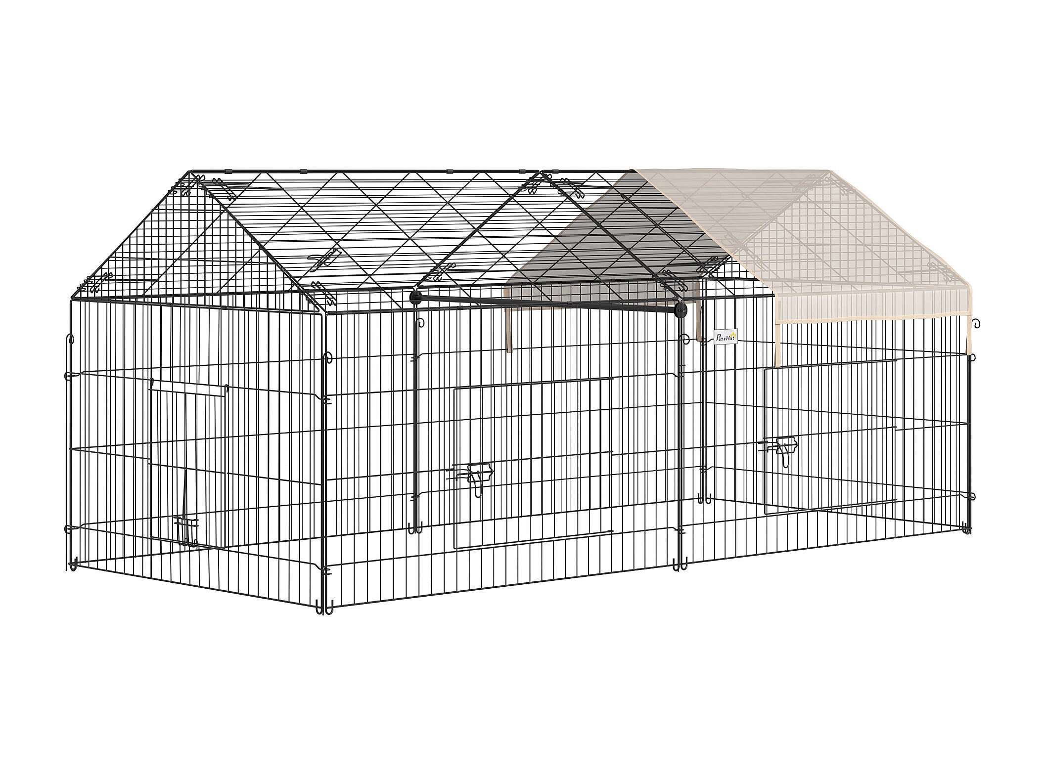 Parc enclos métal époxy cage extérieure dim. 2,20L x 1,03l x 1,03H m 3 portes et trappe surface abrité PE beige