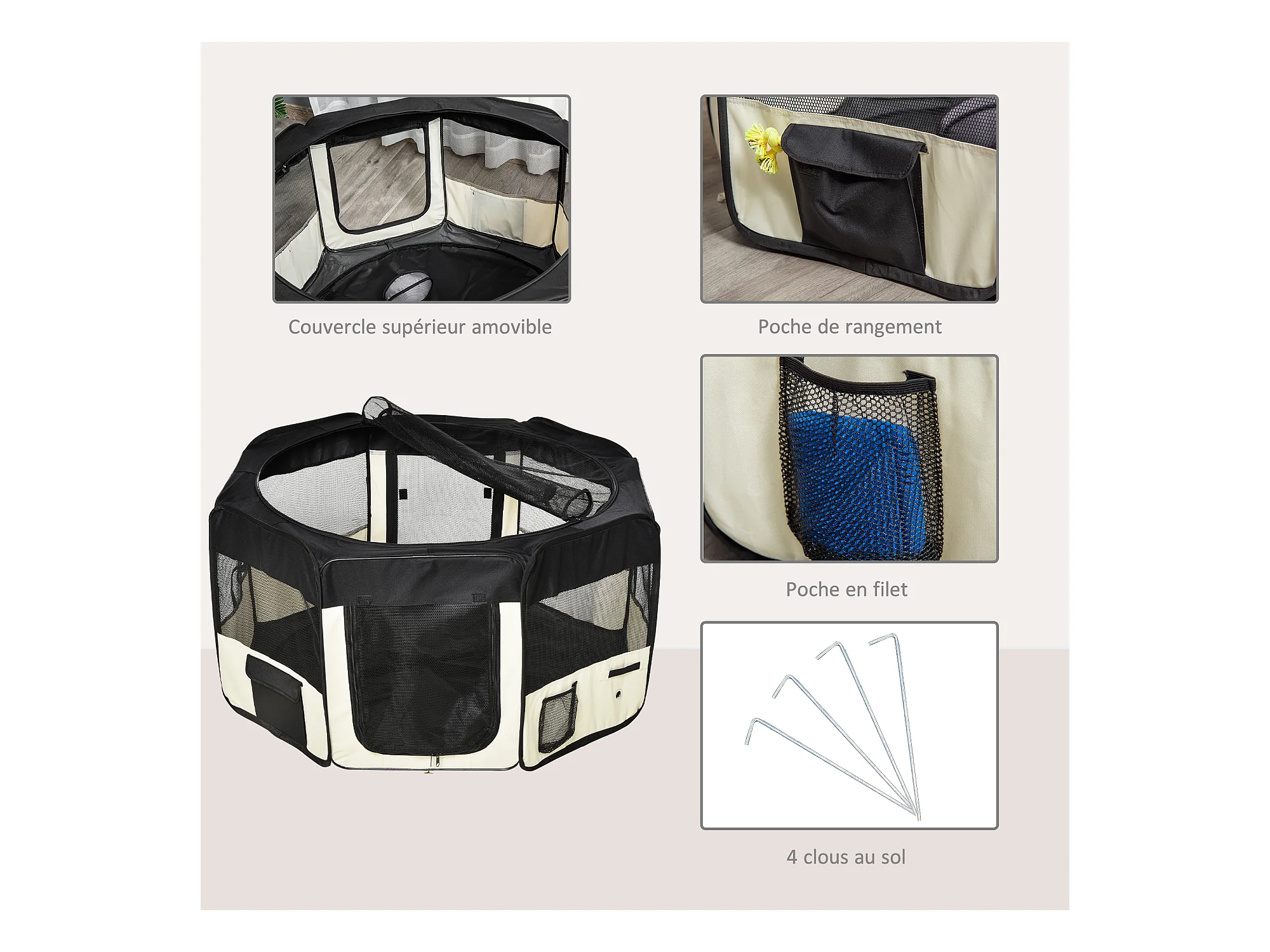Parc enclos pliable chien chat - Ø 120 x 58H cm - acier tissu Oxford - crème noir
