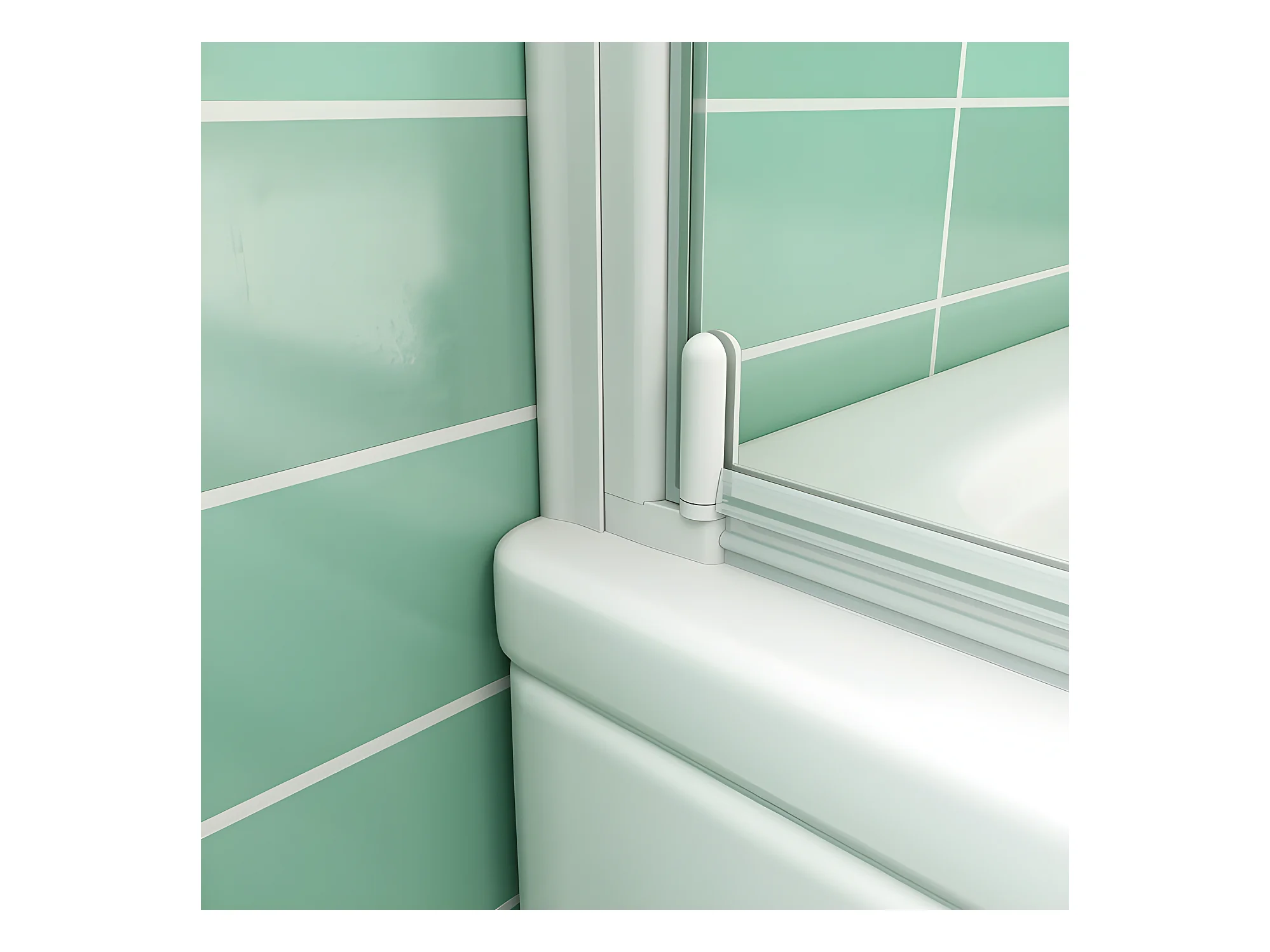 AICA Pare baignoire Blanc mat au angle arrondis pivotant à 180°– L70xH130cm —style industriel – 4mm verre trempé — Installation réversible