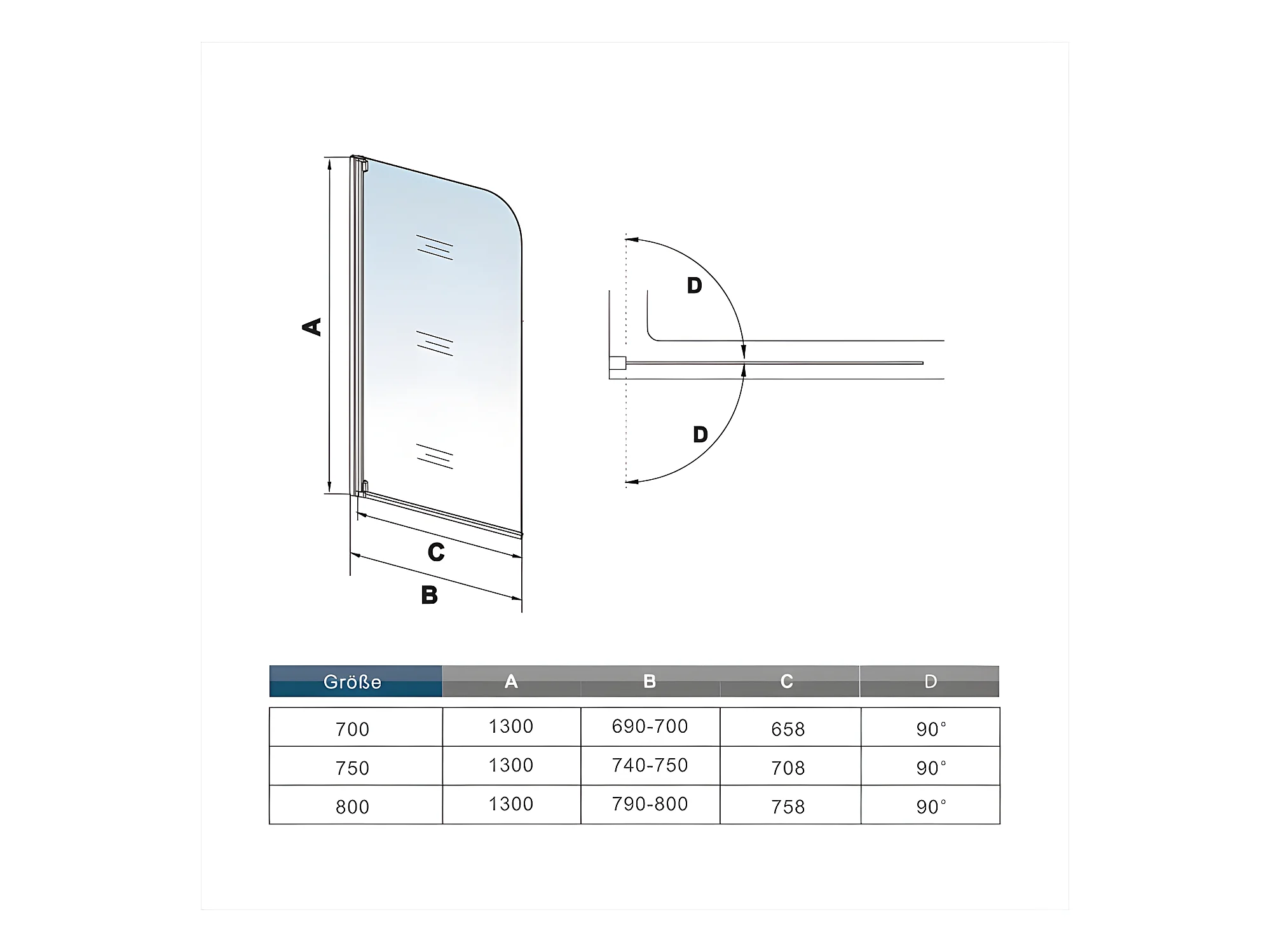 Pare-baignoire 70x130cm en 5mm verre anticalcaire, paroi de baignoire pivotant 180°Hauteur 130cm