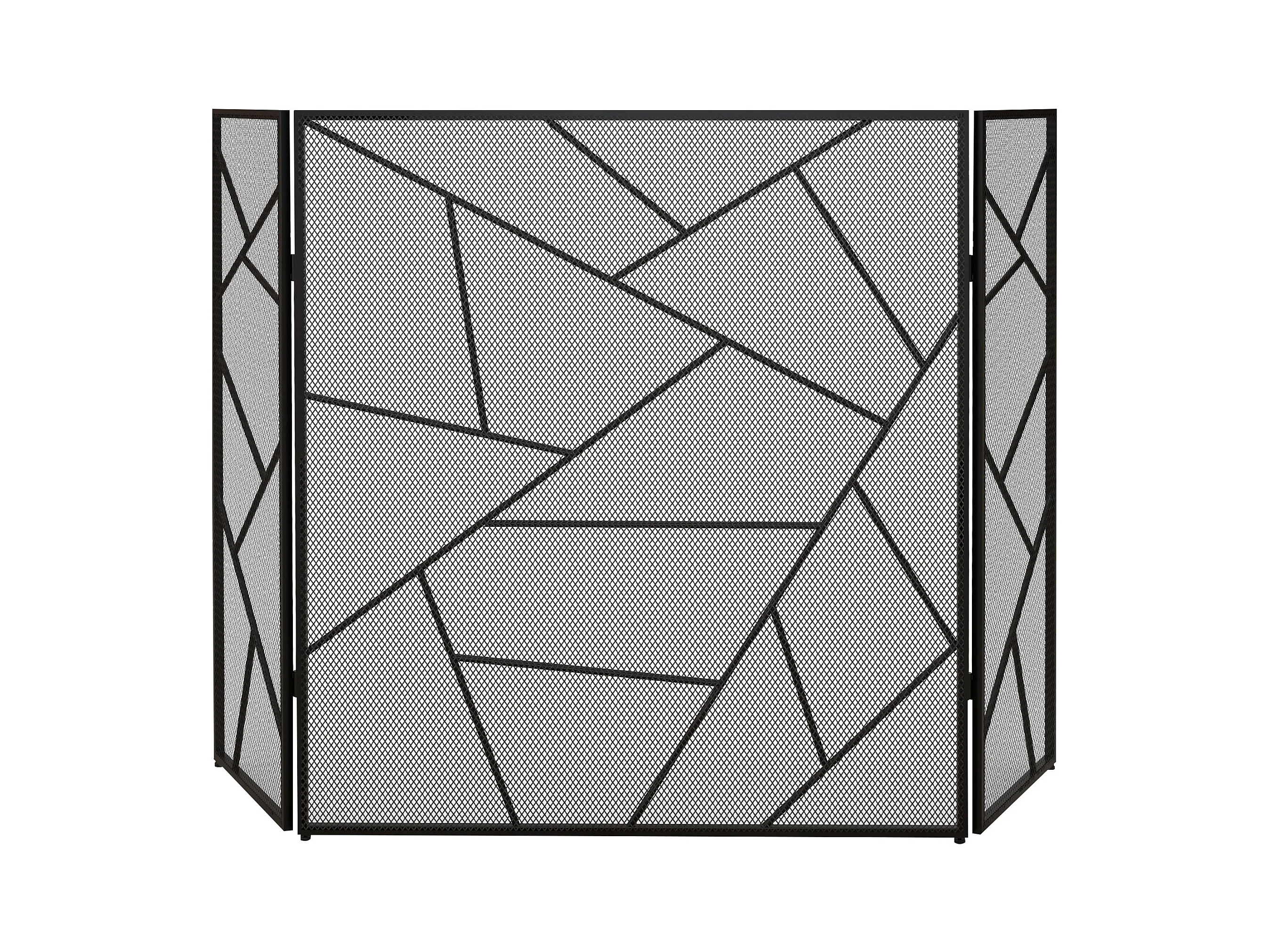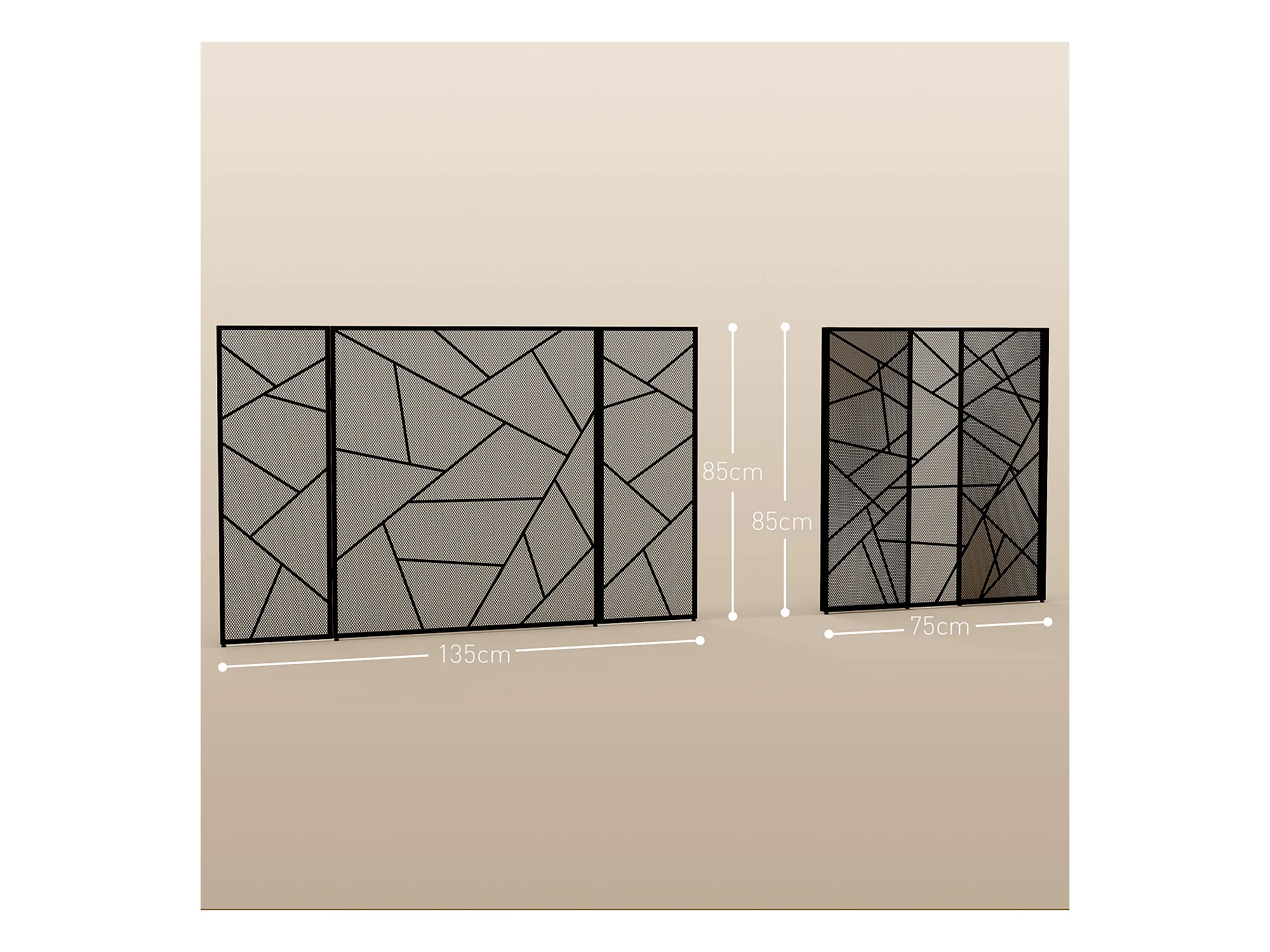 Pare-feu cheminée poêle design graphique - 3 volets pliables - dim. 135L x 1,2l x 85H cm - acier métal noir