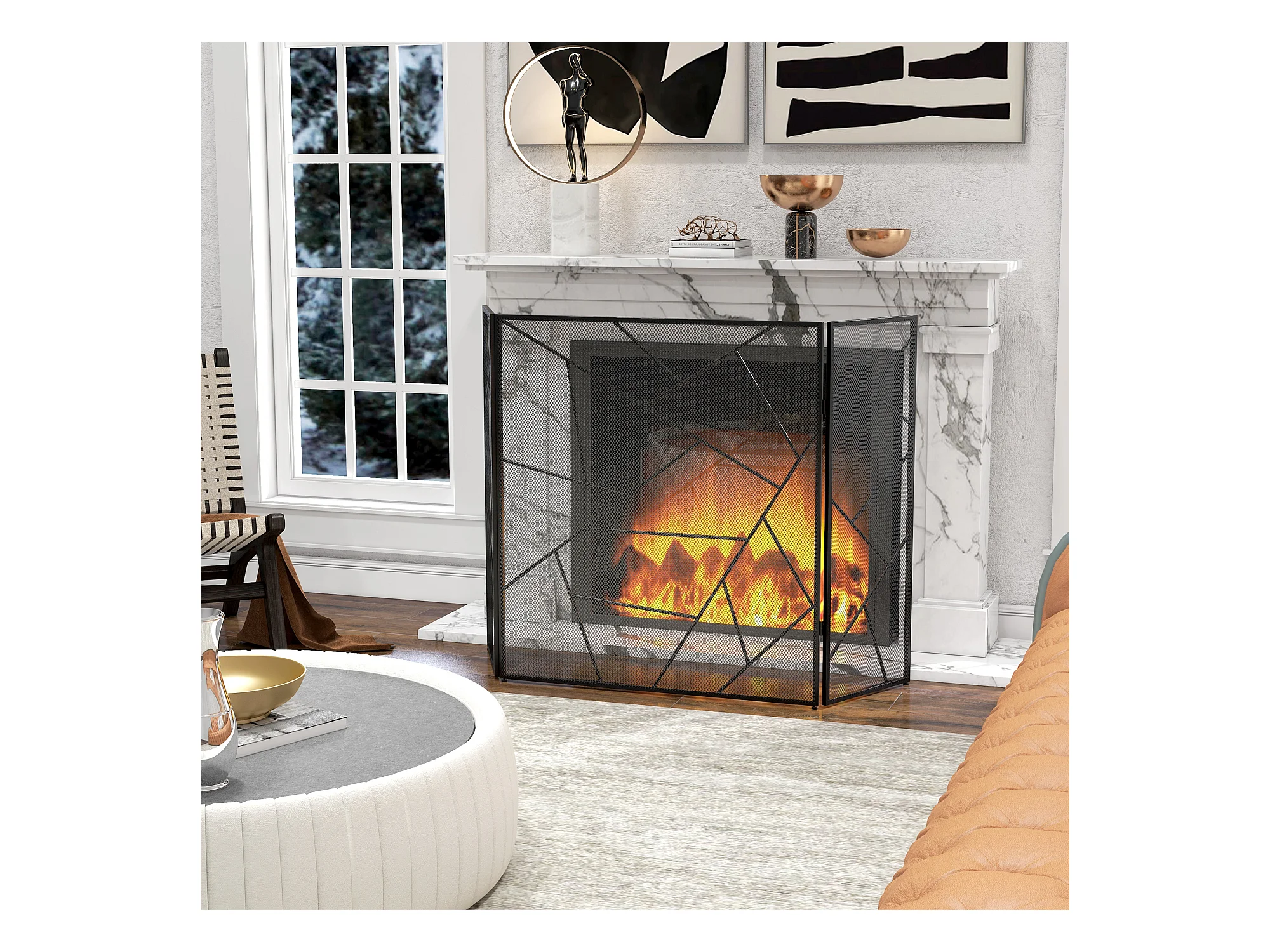 Pare-feu cheminée pliable 3 panneaux métal maille losange noir