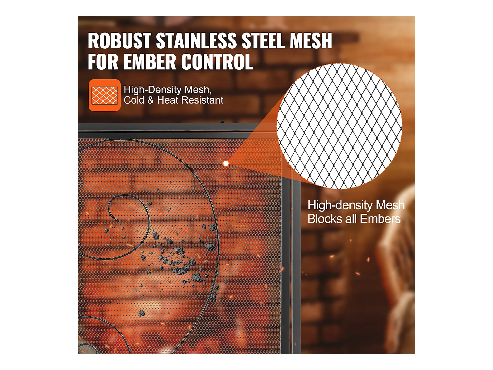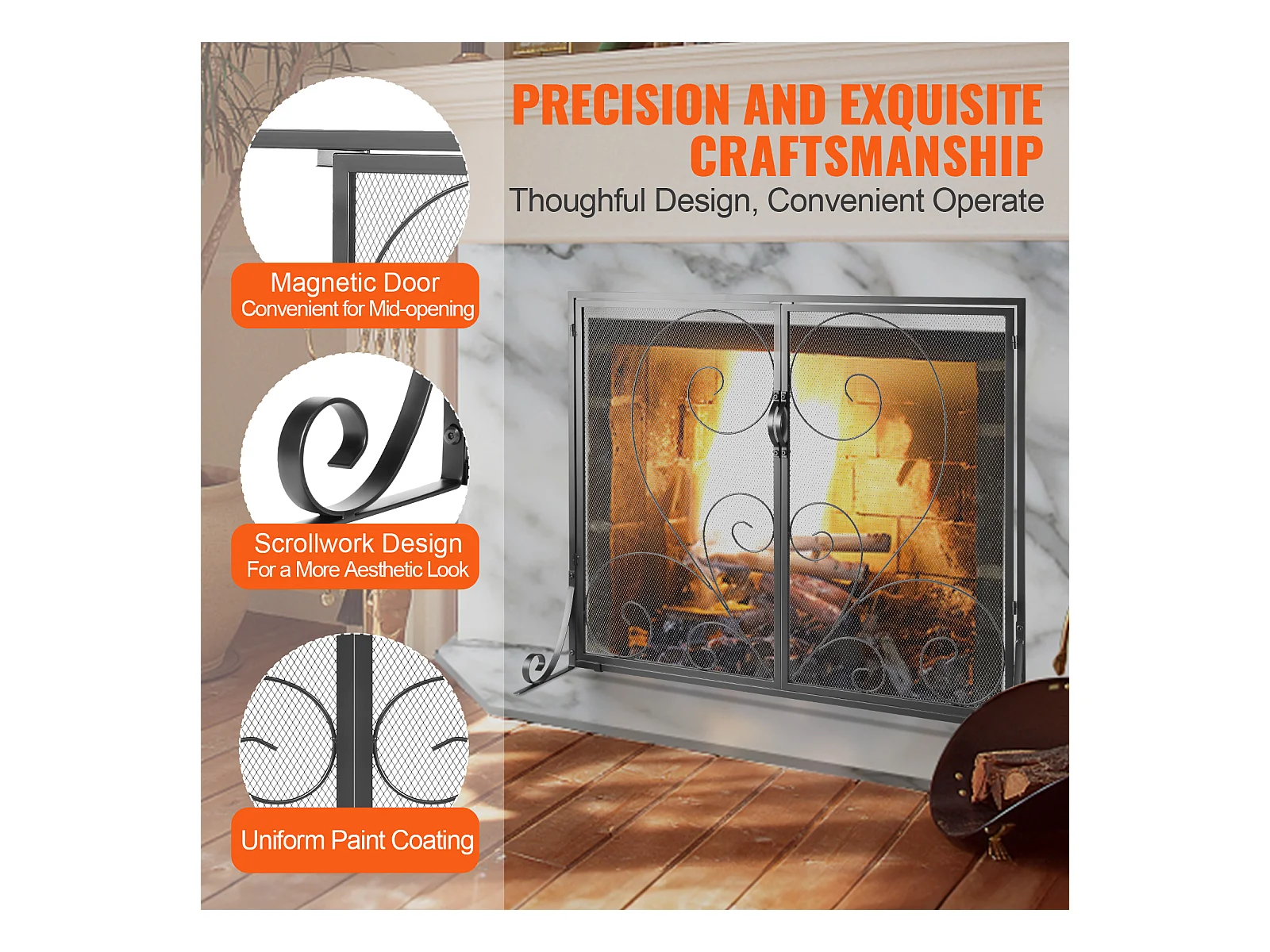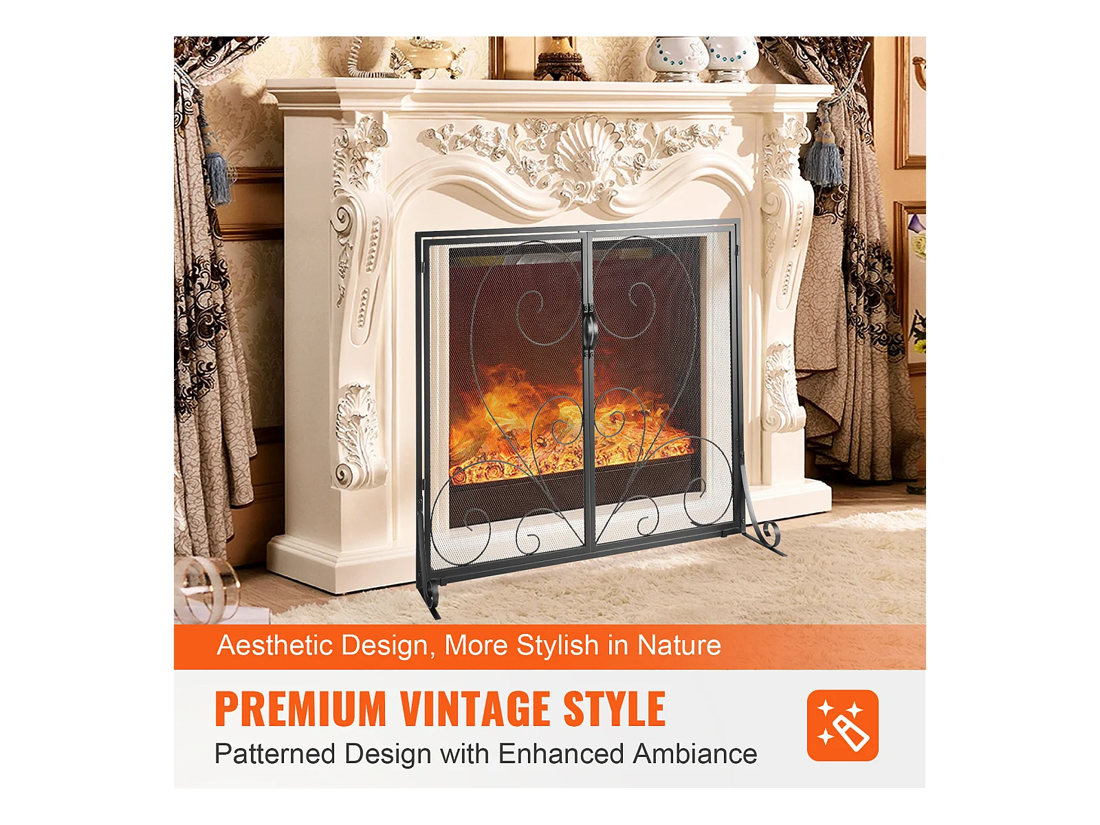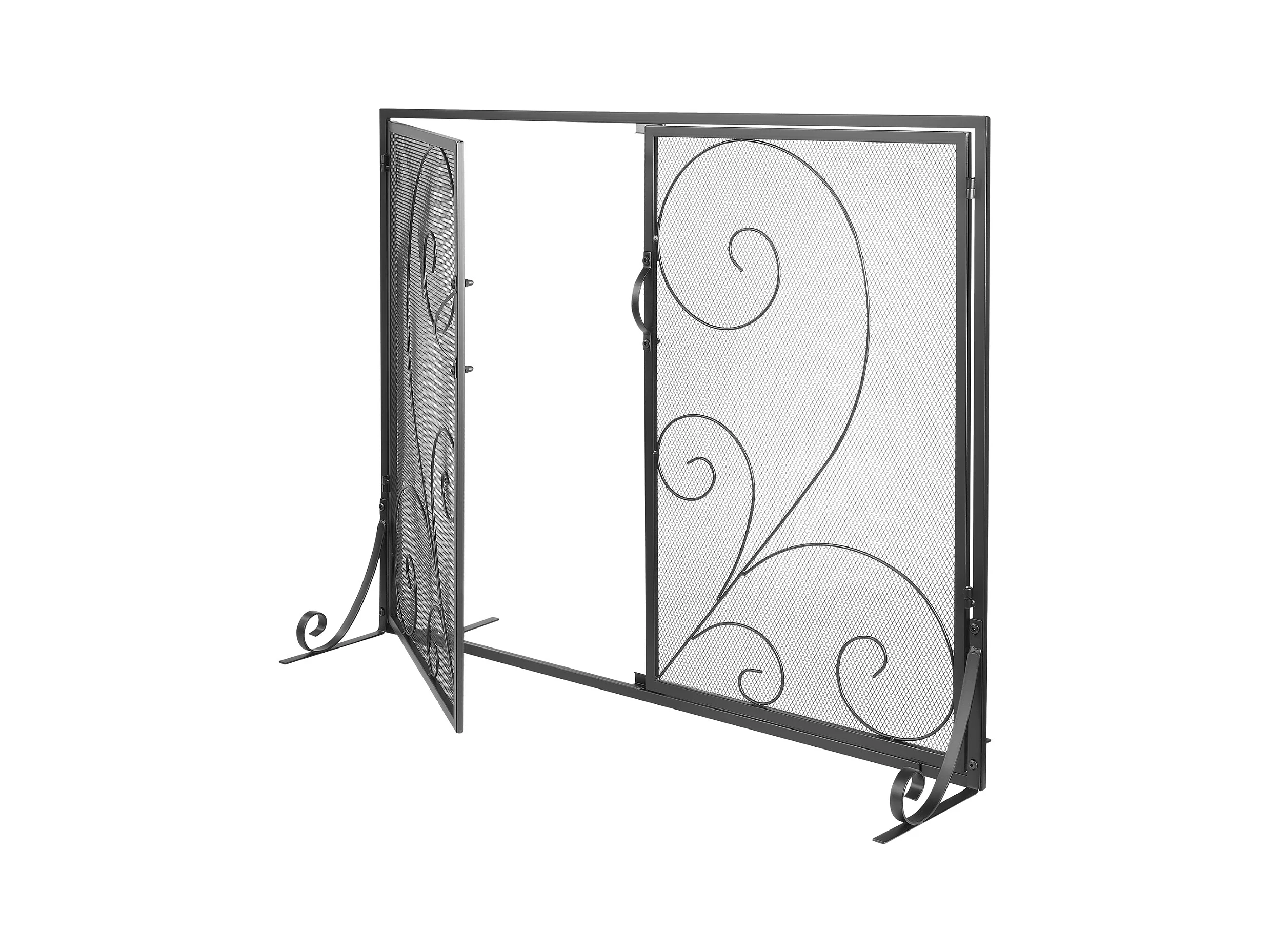 Pare-feu de Cheminée SucceBuy Pare-étincelles à 2 Panneaux 99 x 80.2 CM, Grille en Fer, Noir Vintage