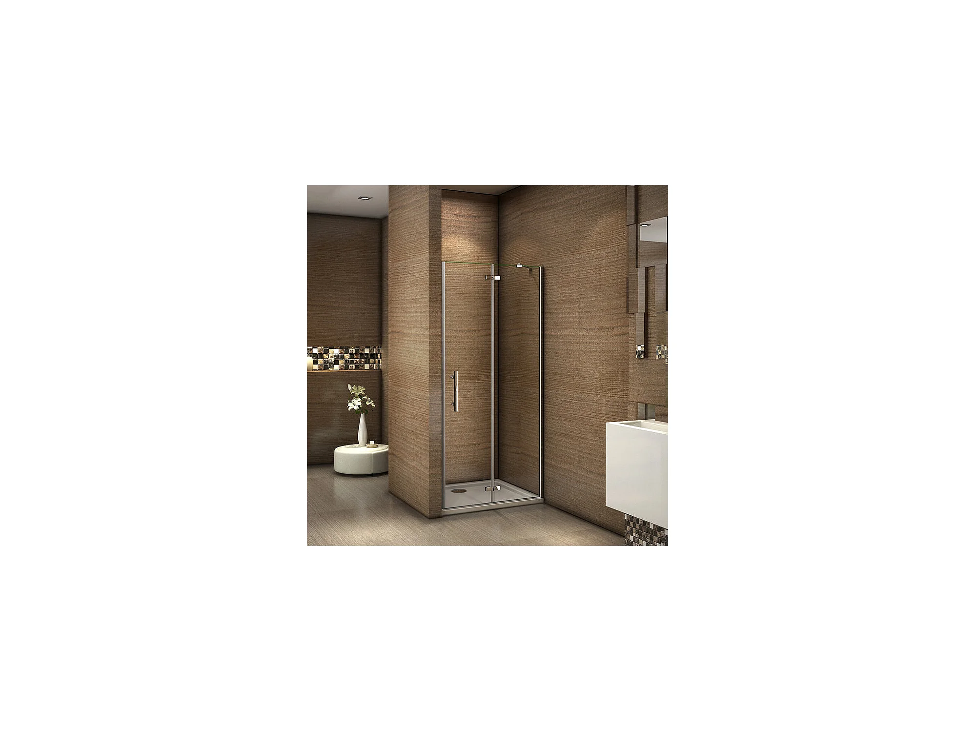 Porte de douche pivotante 90x185cm en niche en verre bande central dépoli anticalcaire Installation à Gauche