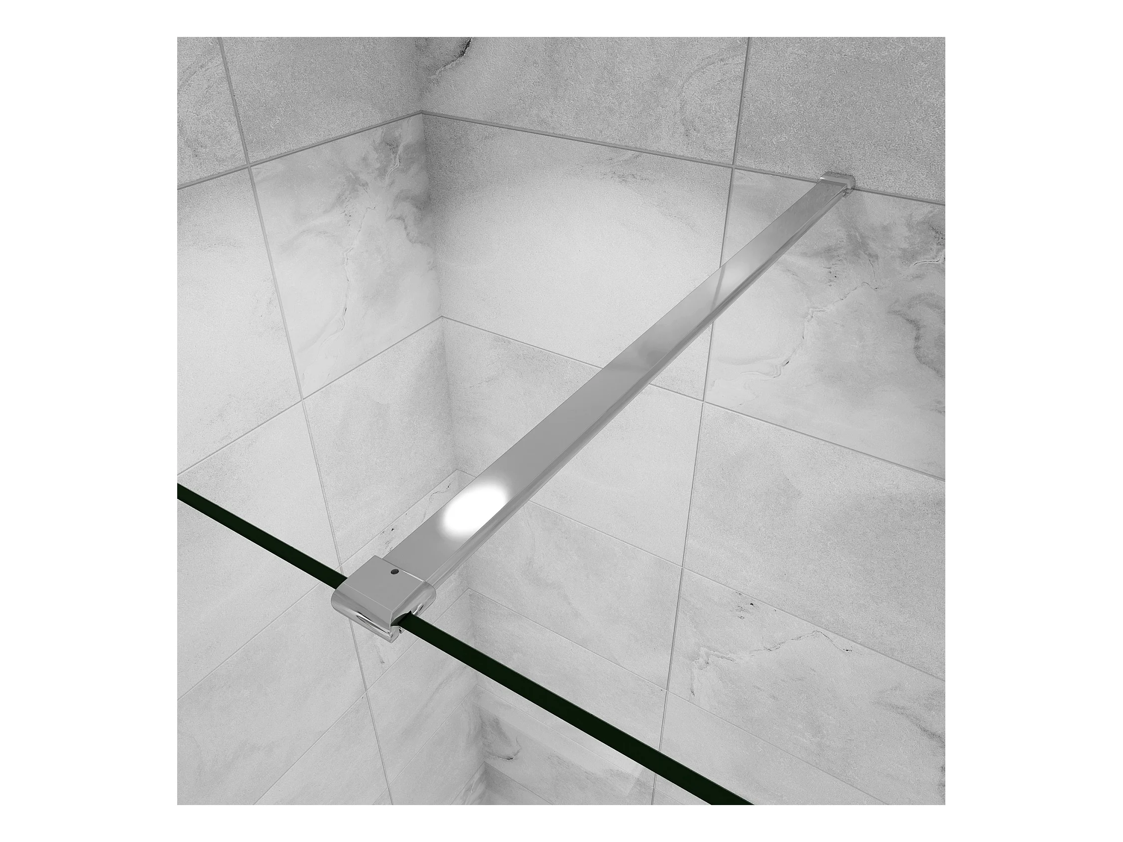 Paroi de douche verre trempé sérigraphié Brume - 60 x 200 cm - Profilés chrome avec barre de fixation 140cm en carré