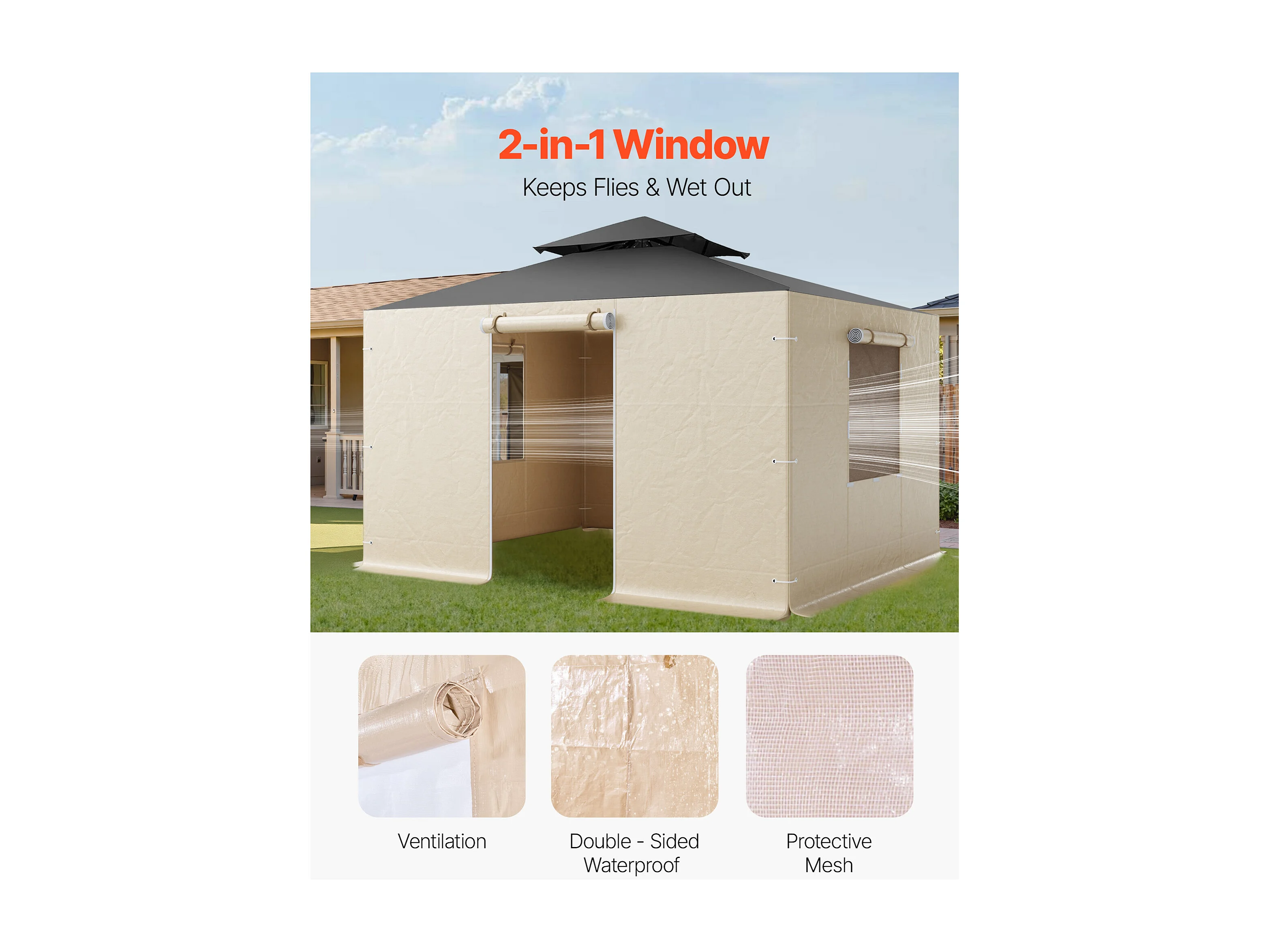 Parois Latérales de Housse de Gazebo Hiver SucceBuy, 3,1x3,6 m, Couverture de Gazebo de Toutes Saisons, avec Fenêtres en Maille, Matériau PE de Haute Densité