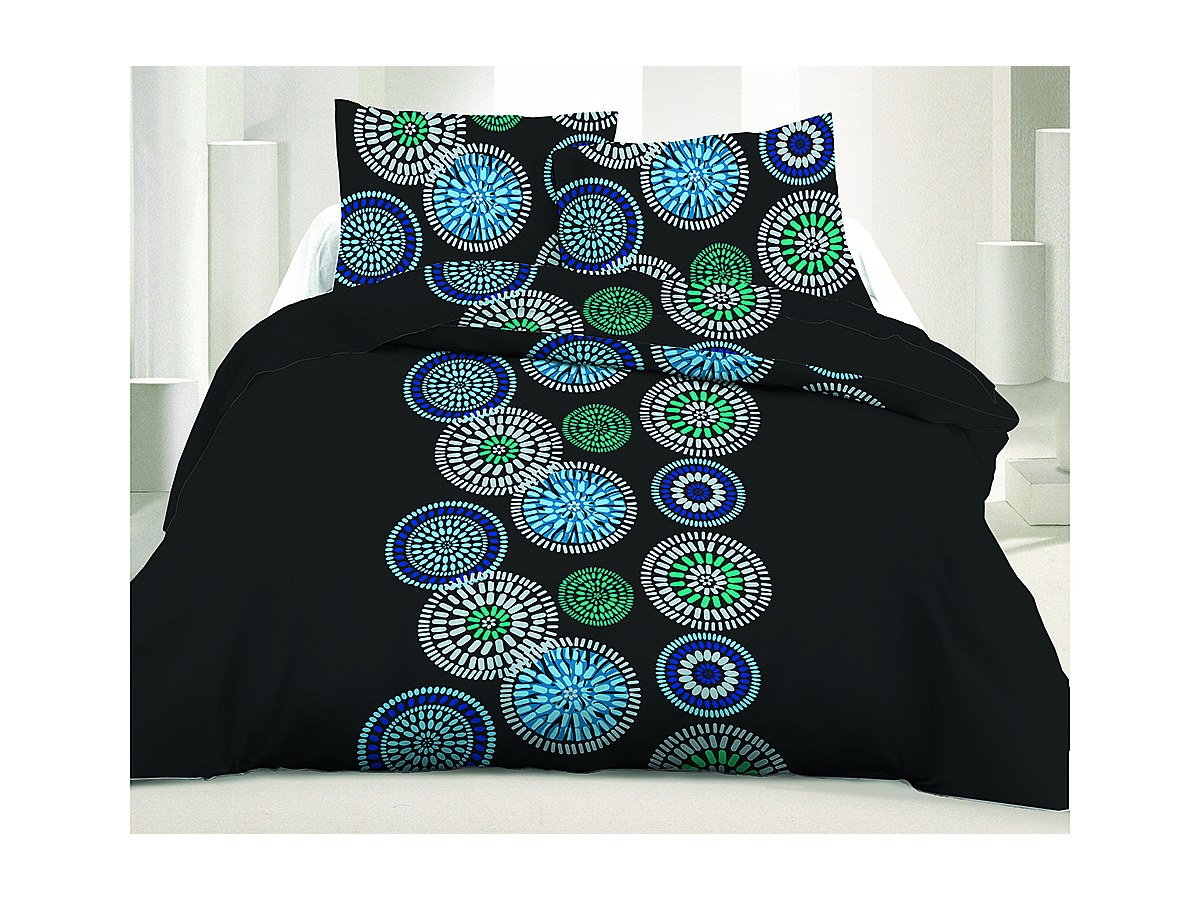 Parure de lit AZELIE - noir et bleu