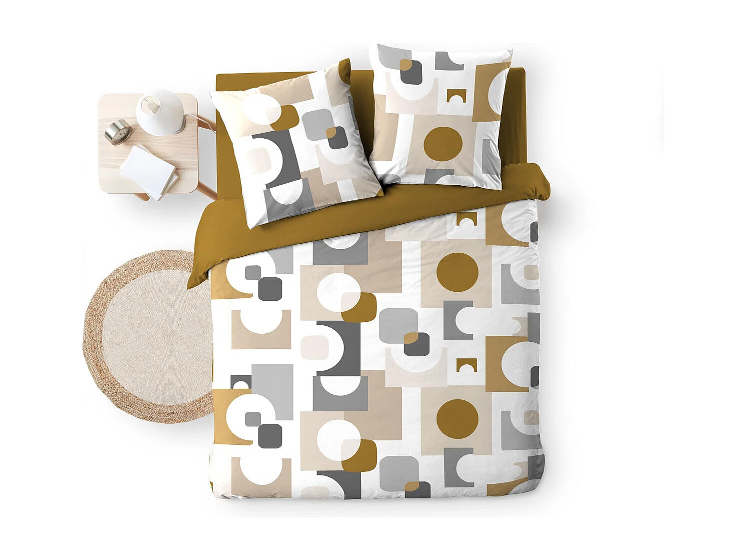 Parure de Lit 3 Pièces "Geomelo" 240x220cm Ocre